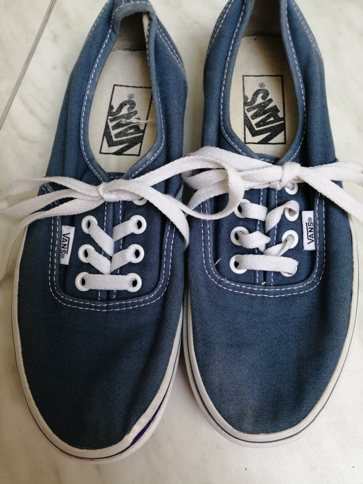 Bledomodré vans babyblue tenisky, dcére kupované na Vianoce, no už ju 36 tlačia a musíme kupovať už 37. Preto takmer nenosené, mala ich párkrát. Vnútorná dĺžka 22 cm cena už znížená niekoľkokrát ...