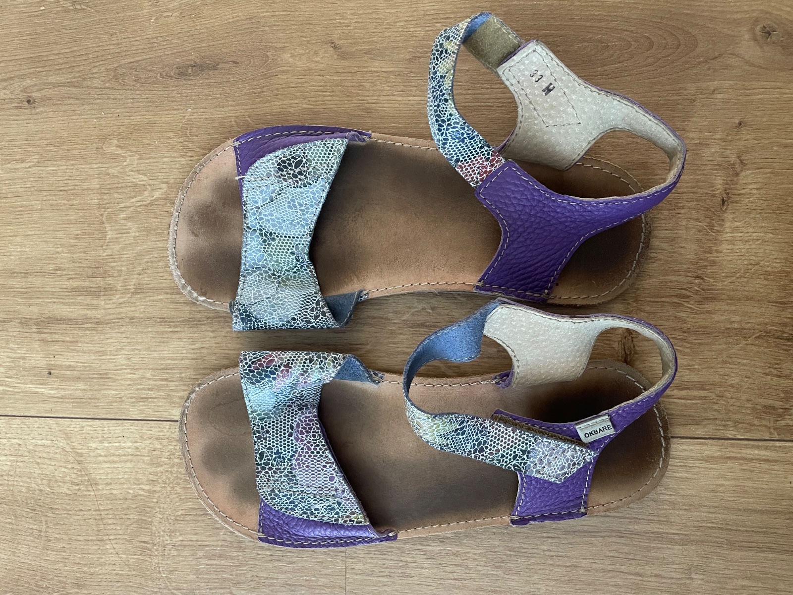Barefoot sandálky, veľkosť 33, vd od šitia po šitie 22 cm. Na podrážke na vnútornej strane vidno nosenie, ináč bez poškodenia.
