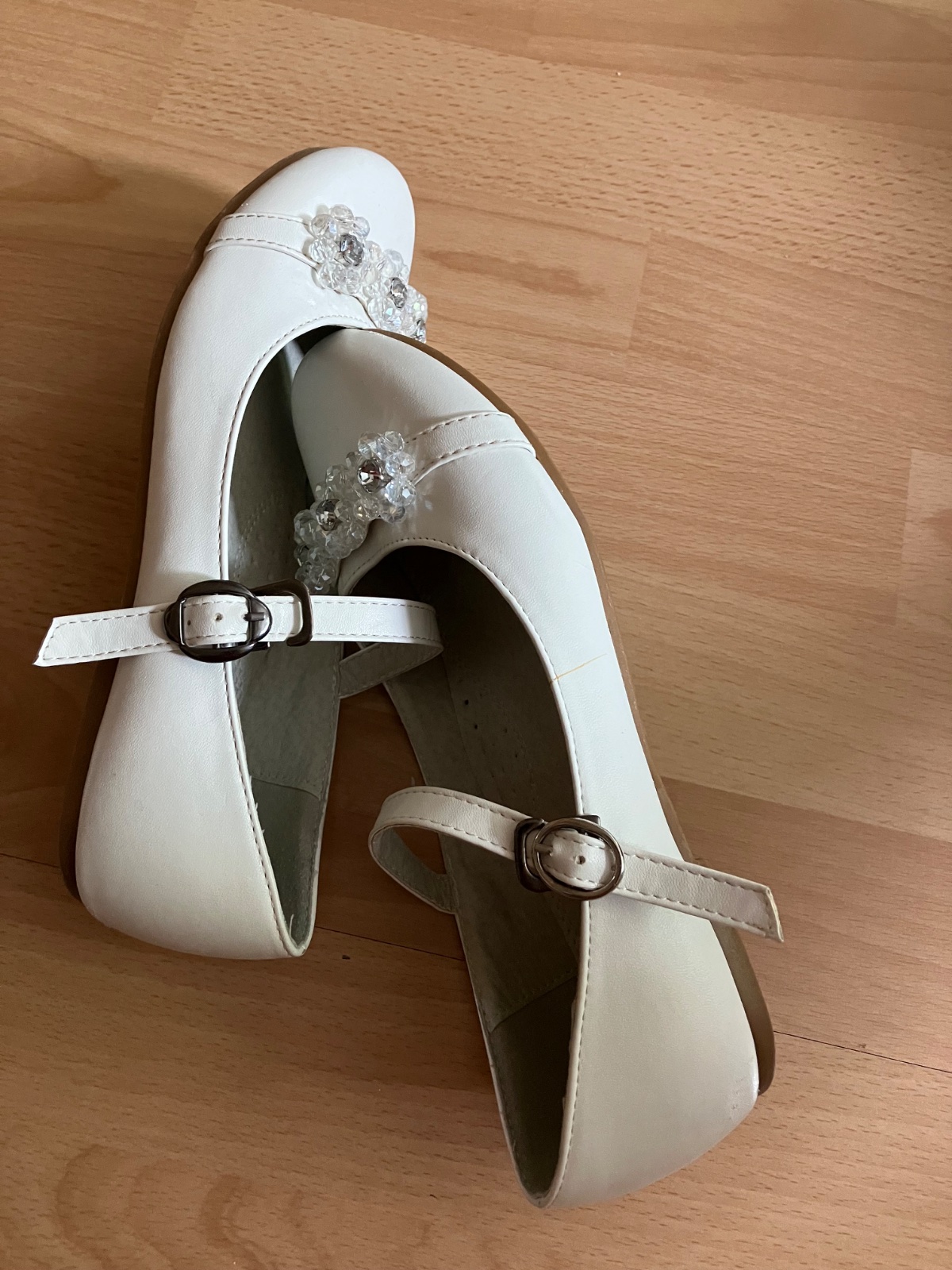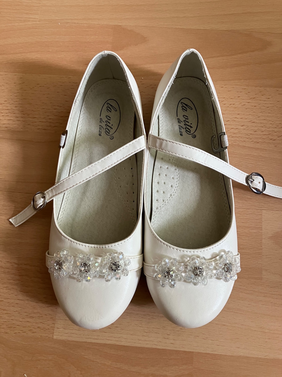 Biele topánočky, veľkosť 35, obuté len na 1. sv. prijímaní, bez poškodenia V prípade záujmu pribalím venček grátis.