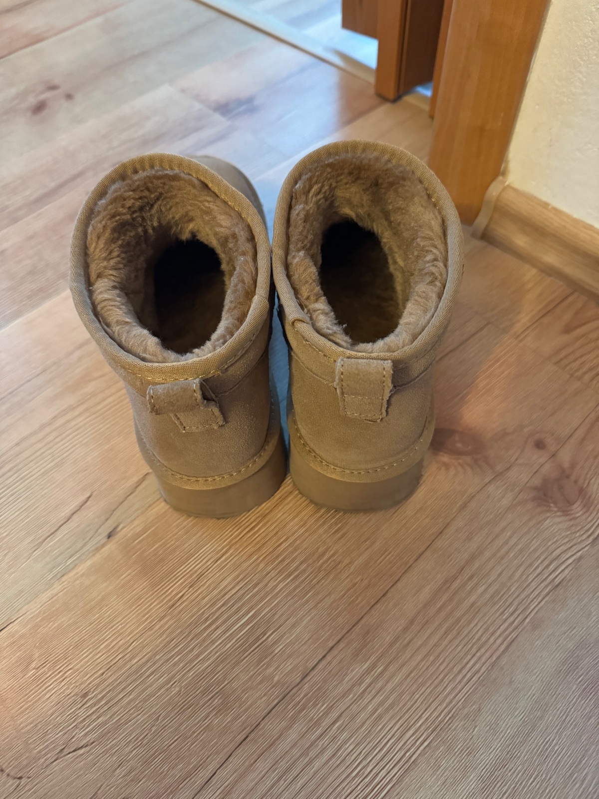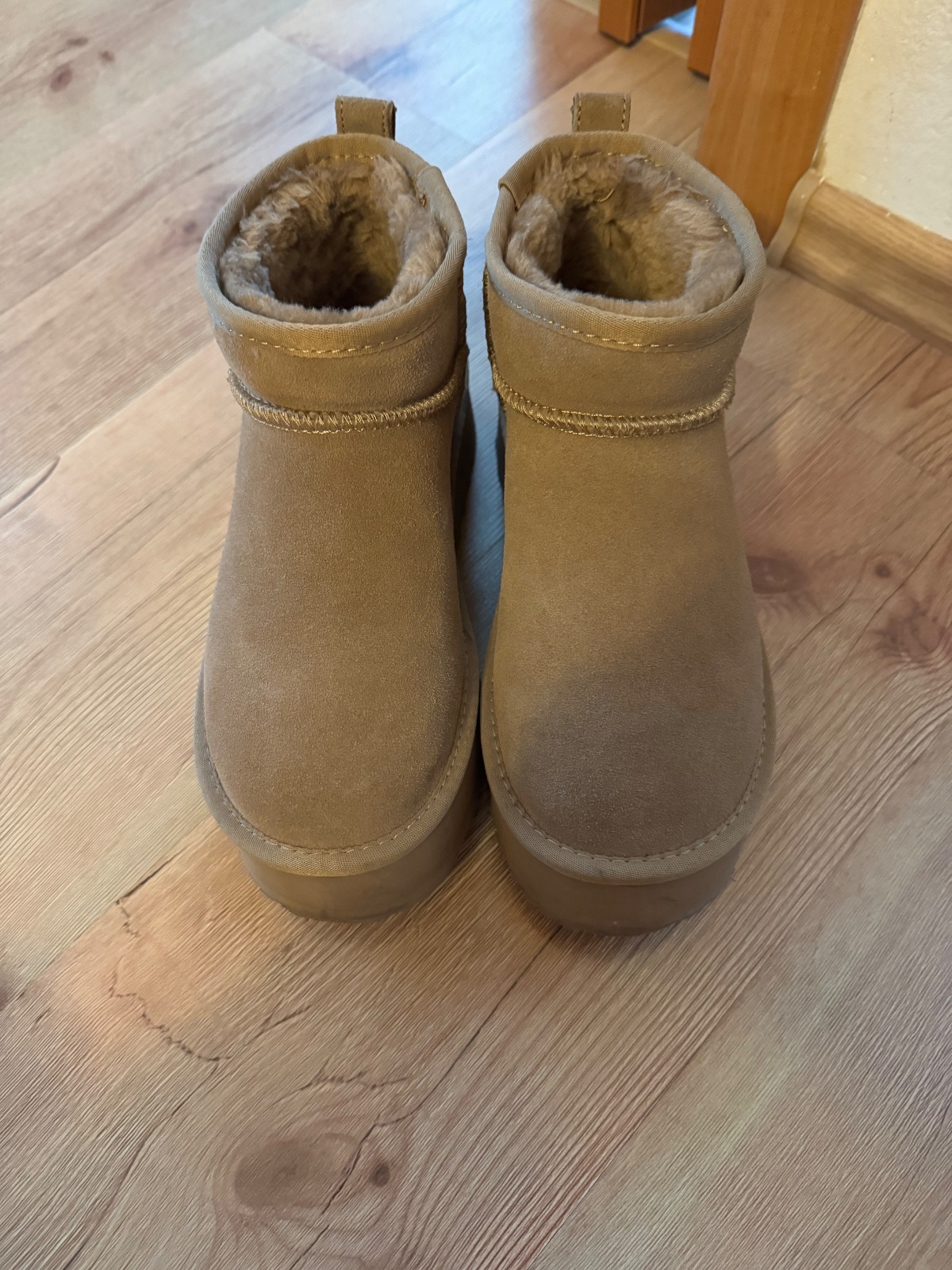 Nove cizmy s vysackou, zateplene ale nie kozusinou. Cize na miernu zimu. Povodna cena 39,99 eur.