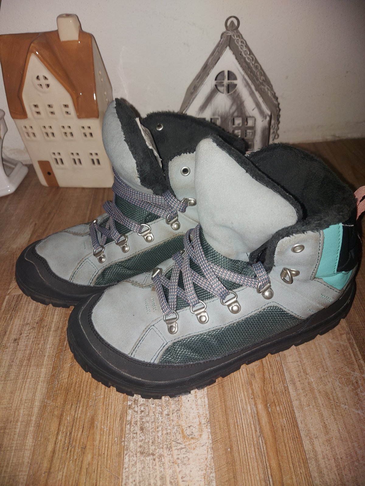 Posunieme perfektné zimné topánky Quechua, kožené, nepremokavé. Vpredu širšie, pre pohodlné nosenie. Boli ozaj malo nosené. Pre chodilo dĺžky 22cm.