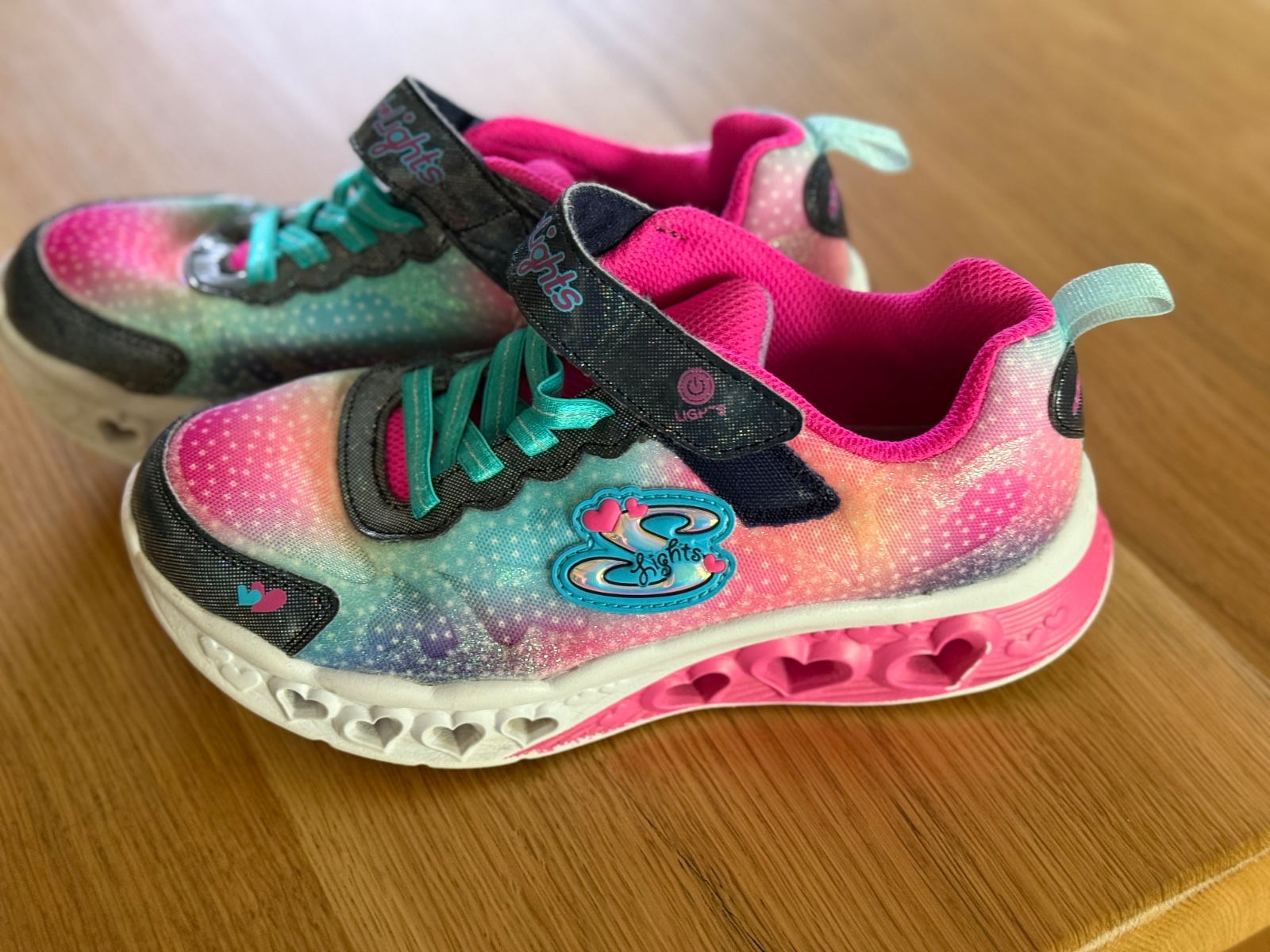 málo nosené. pri chôdzi svietia, svetlo sa dá vypnúť. VD 22cm. PC 64€
