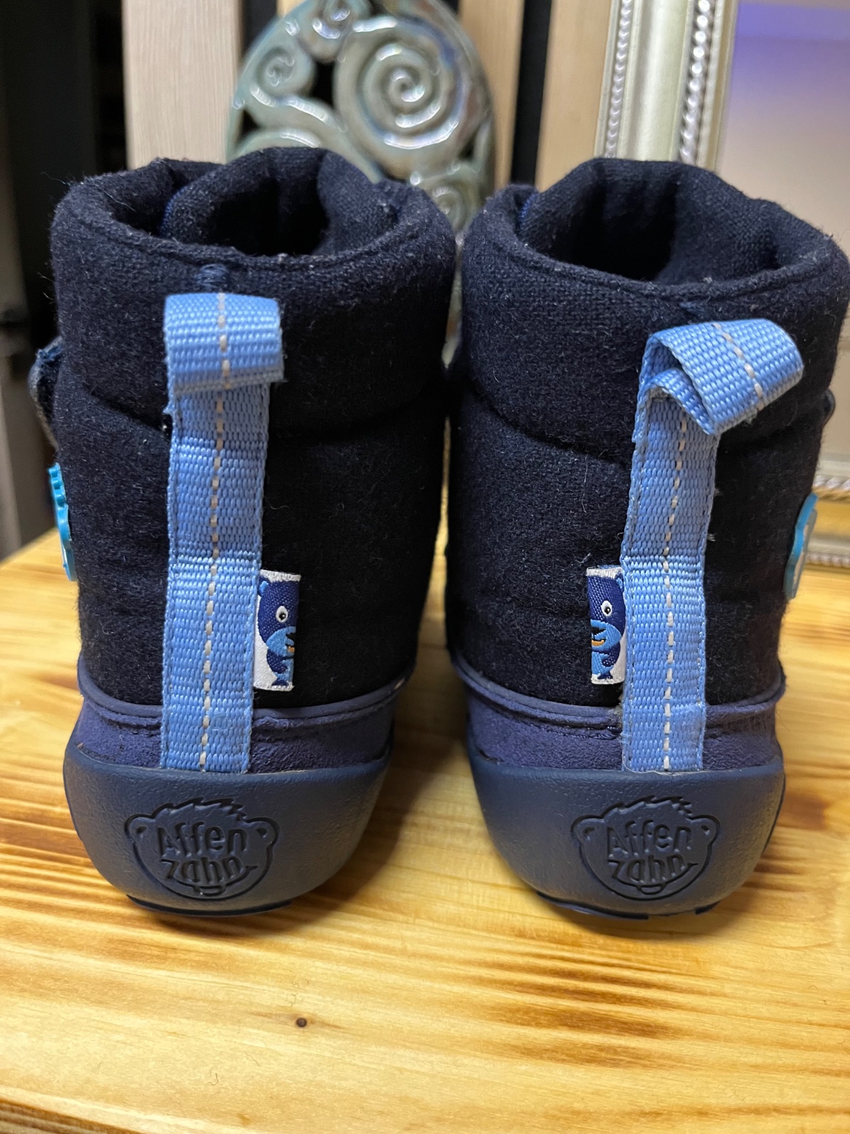 Ponukam na predaj úžasné premakane zimné barefoot vegan topánočky, snehule Affenzah Minimal Midboot Wool sú štýlové, ľahúčke a praktické vlnené zimné topánky. veľmi teplučké, nepremokavé-pravidelne impregnované. nosené na striedačku s ďalšími . V krasnom nosenom stave-jediný nedostatok je ošúchaný pásik v prídu na topánke -tomu sa nedalo vyhnúť lebo sa zosuchal pri umývaní topánok 🙈. Nosene jedným dietatom jednu sezónu. VD je 19.1cm