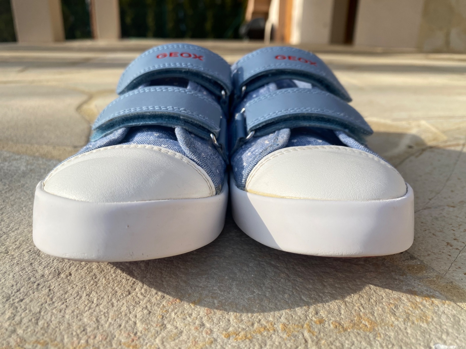Predám geox tenisky, mierne zateplené a vhodné aj do miernej zimy. Veľkosť 33, tmavomodrej farby, nosené jednu sezónu. Jemné začínajúce praskanie vpredu bez funkčného poškodenia (viď foto) a preto ...