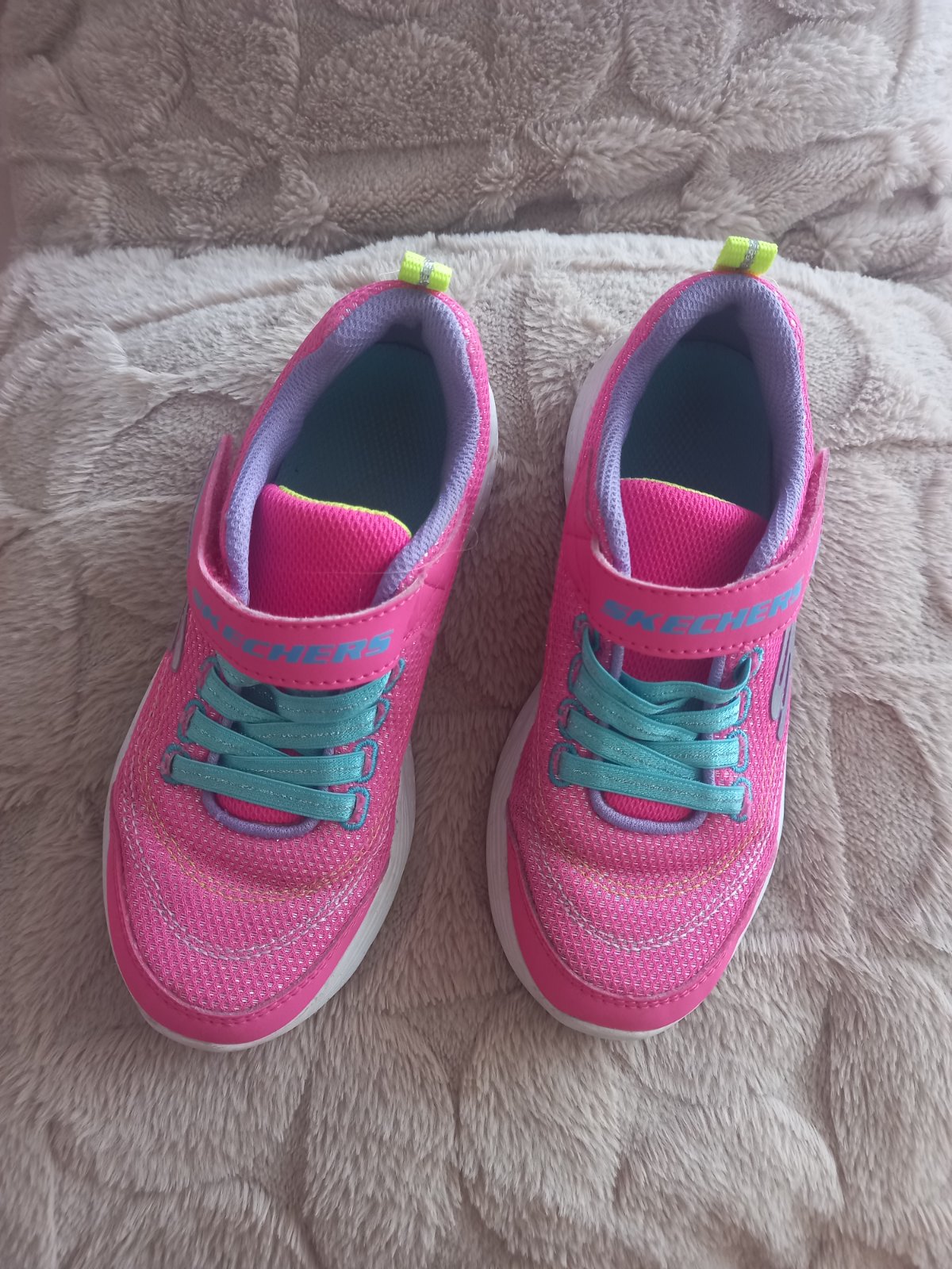 Dievčenské tenisky na jednu lepačku, celkom zachovalý stav. Vnútorná dĺžka je 20,5cm, ideálne na nôžku 19cm.