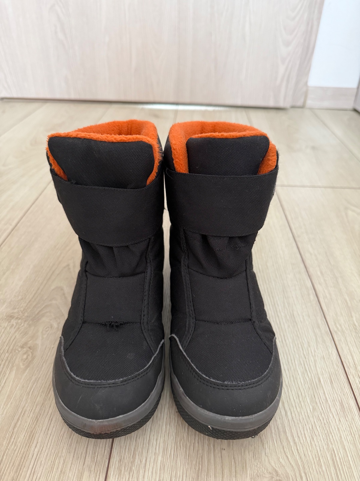 Nosené snehule, suché zipsy držia, vzadu na textilnej časti naparané, ale funkčné.