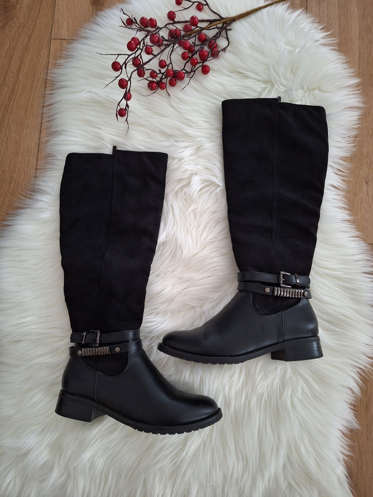 Predám zachovalé dámske vysoké čižmy vo veľkosti 36, obuté 2x. Čižmy sú z materiálu imitacia kože a textilný material(semiš).