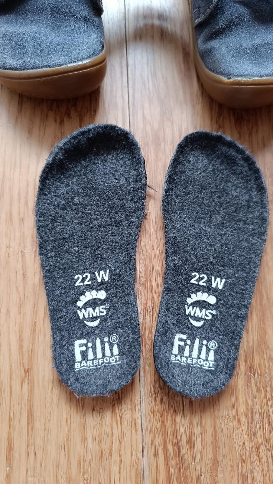 Predám intenzívne nosené barefoot celoročky zn. Filii Chameleon Velcro Velours Ocean Fleece, rada W, čiže na stredné vyšší až vyšší priehlavok, veľkosť 22. VD 14.4cm, VŠ 6.0cm. Vo vnútri flis. Suché zipsy slabo držia, treba ich vymeniť a okopová časť gumy na špice je mierne poškodená (viď foto). Stále sú vo veľmi dobrom stave a ešte ich nejaké dieťatko vynosí. Cena symbolická, keďže treba tie šucháče vymeniť.