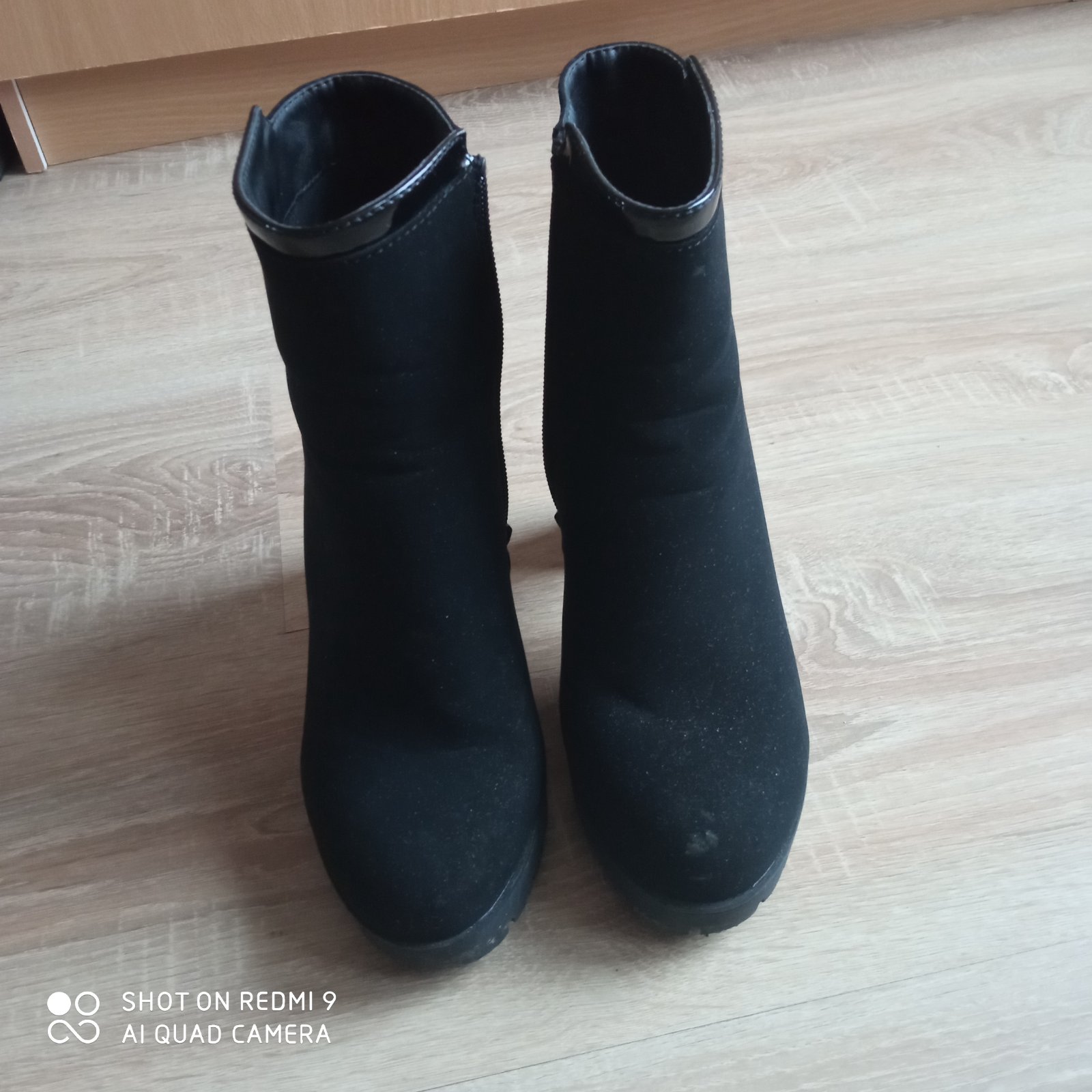 Bez poškodení....materiál brúsená koža.....zateplené....výška podpätku 10cm..... podrážka 2cm.....VD 23,5-24cm ťažko sa to meria....