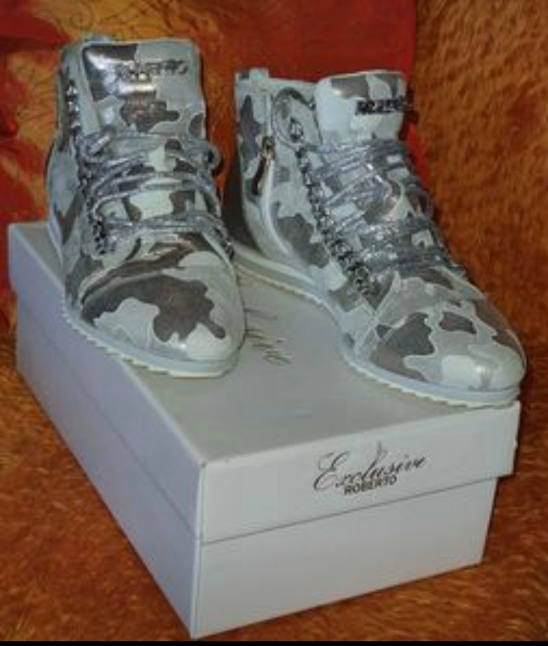 Kožené strieborné maskačove tenisky, talianska zn.Roberto Exclusive, velk 36,1x vyškušané, zapínanie na boku na zips, pc cena 85€,teraz 75€