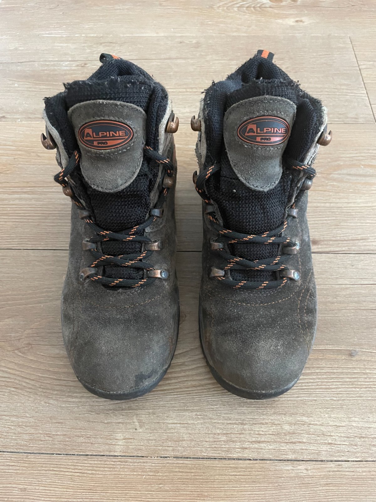 Predám detské turistické topánky Alpine Pro čierno-šedej farby. Veľkosť č.34. Cena 15 eur.