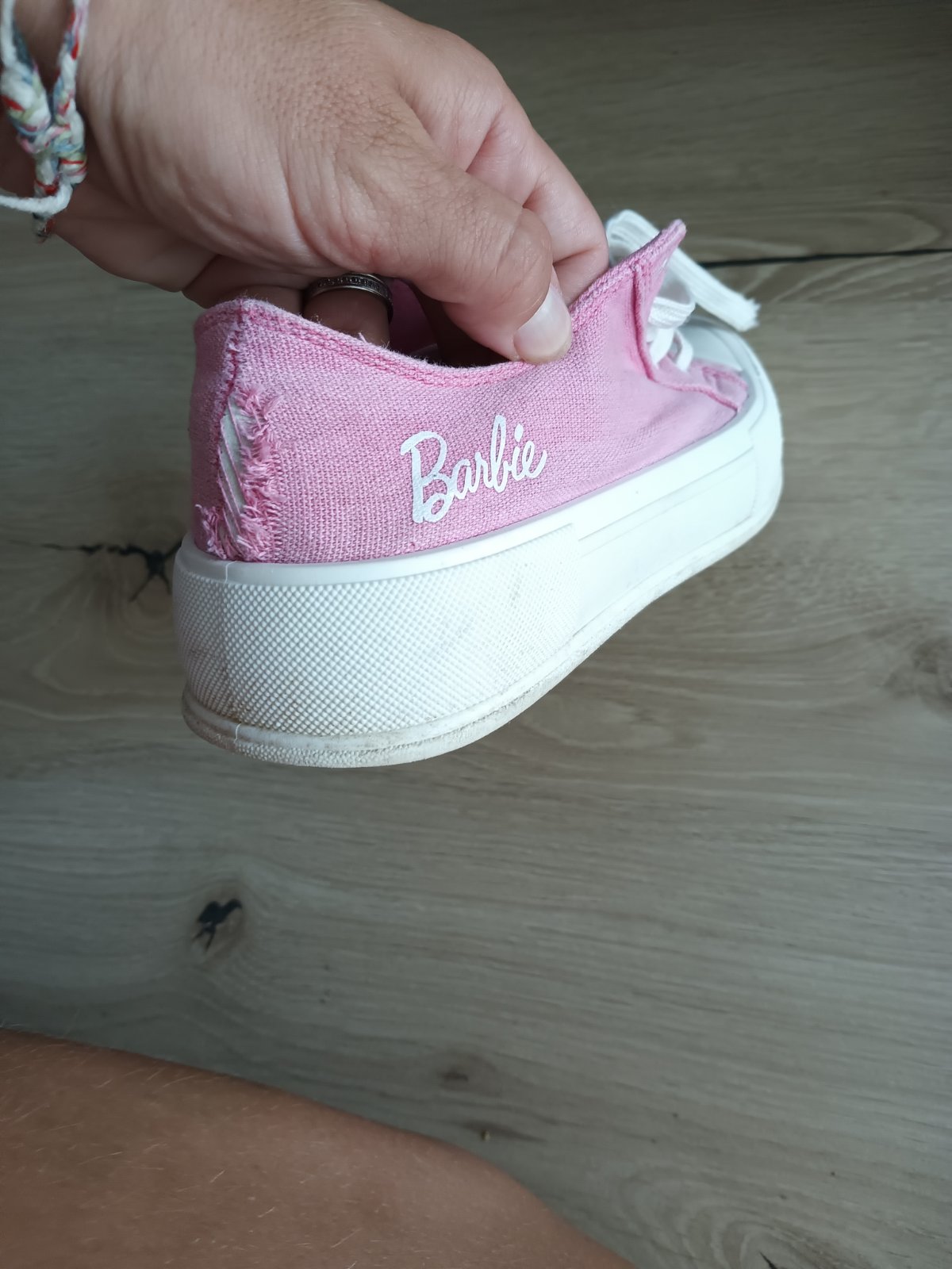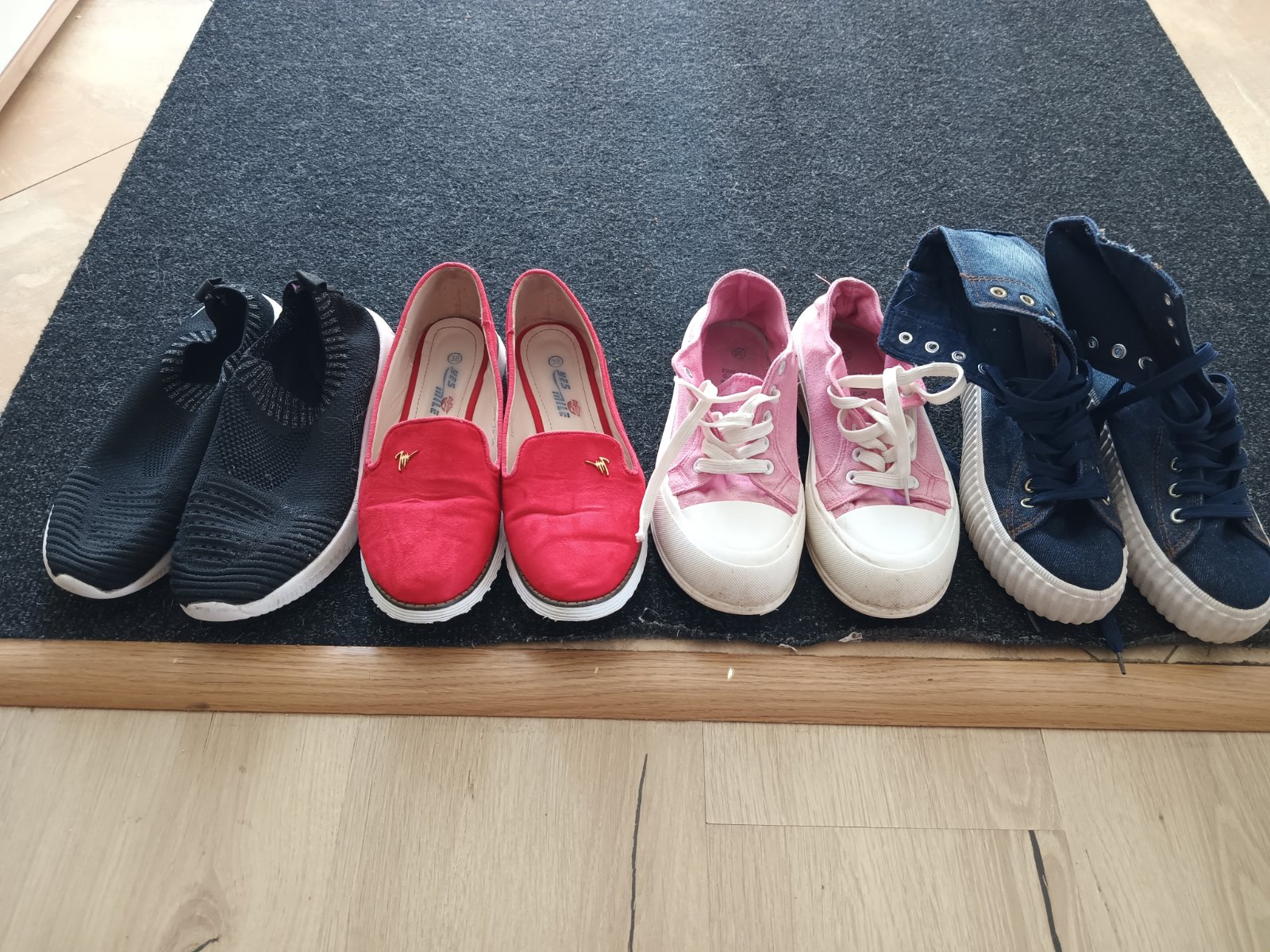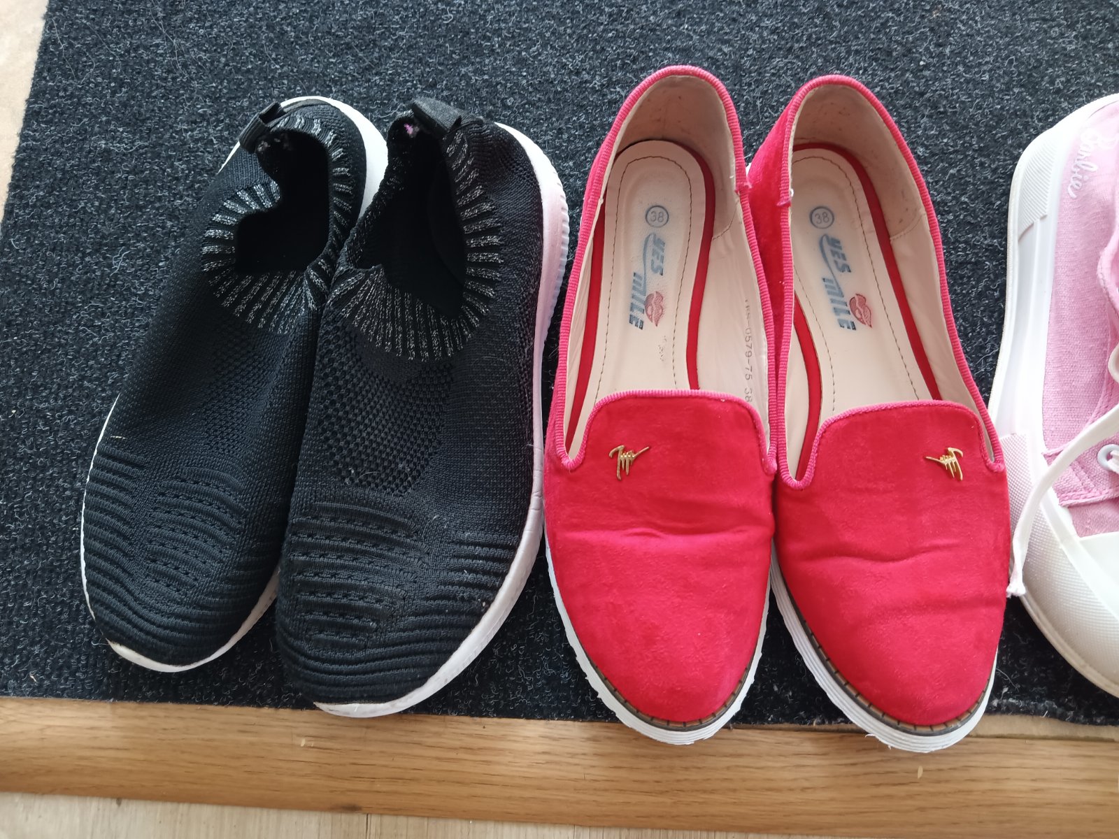 Rôzne topánky v dobrom stave funkčné ružové tenisky vzadu trochu zahrnuté