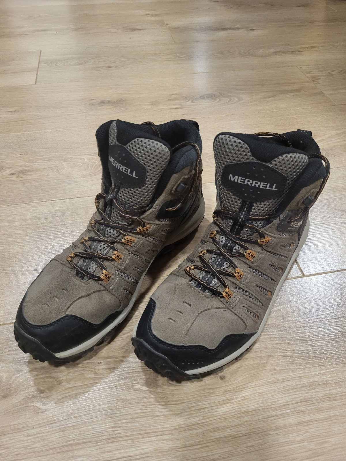 Nepremokave velmi zachovale clenkove topanky MERREL vhodne na turistiku aj bezne nosenie na jesen a v zime. Nie su zateplene, no povrch je z brusenej koze. Su lahucke a pohodlne. Syn ich nosil velmi malo. Vnutro 25.5 - 26 cm.