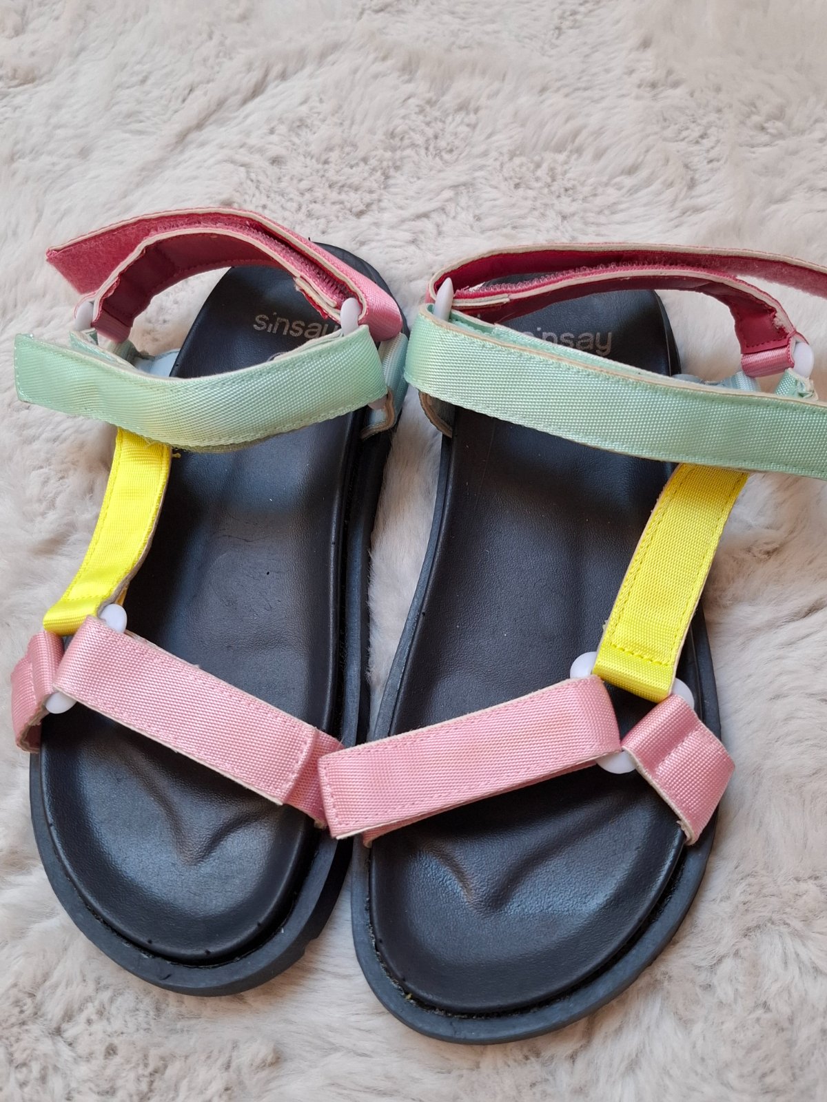 Možno 2 x obuté, zn. Sinsay, veľkosť 36, na jednej sa odliepa predok, bude treba podlepit. cena 2 Eur
