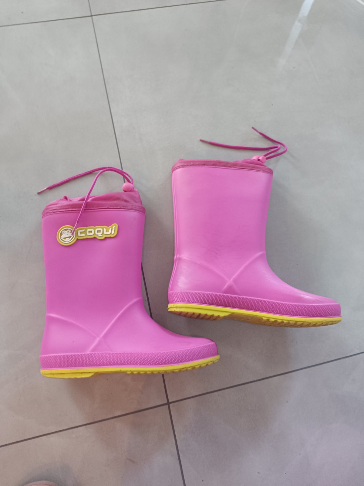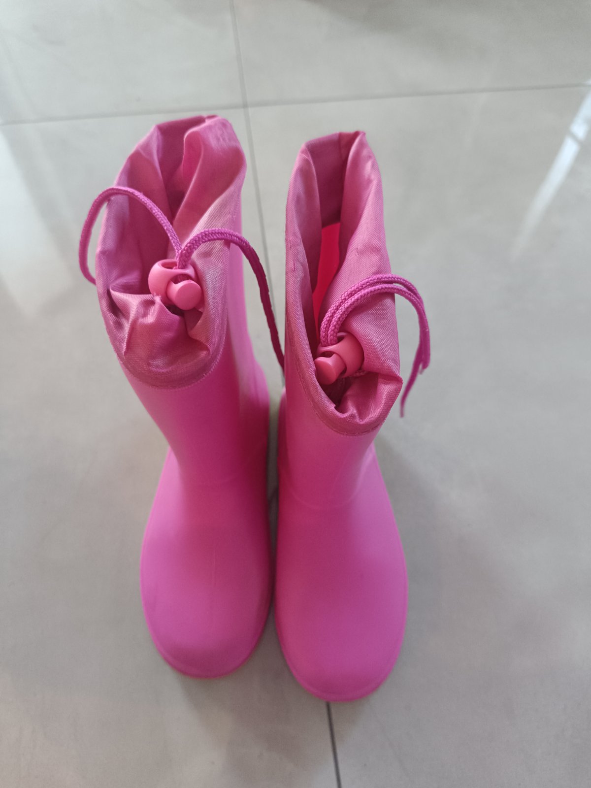 Dievčenské gumáky nezateplené, v dobrom stave. Veľkosť je 33, ale vnútorná dĺžka je 21-21,5 cm čo skôr zodpovedá menšej veľkosti.
