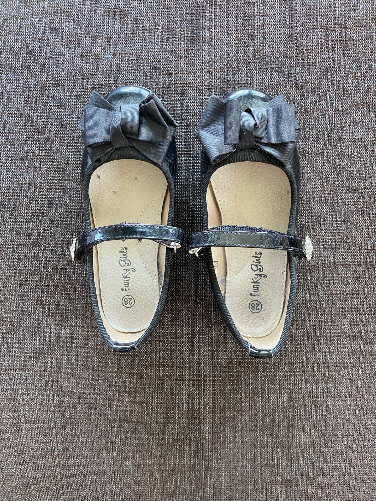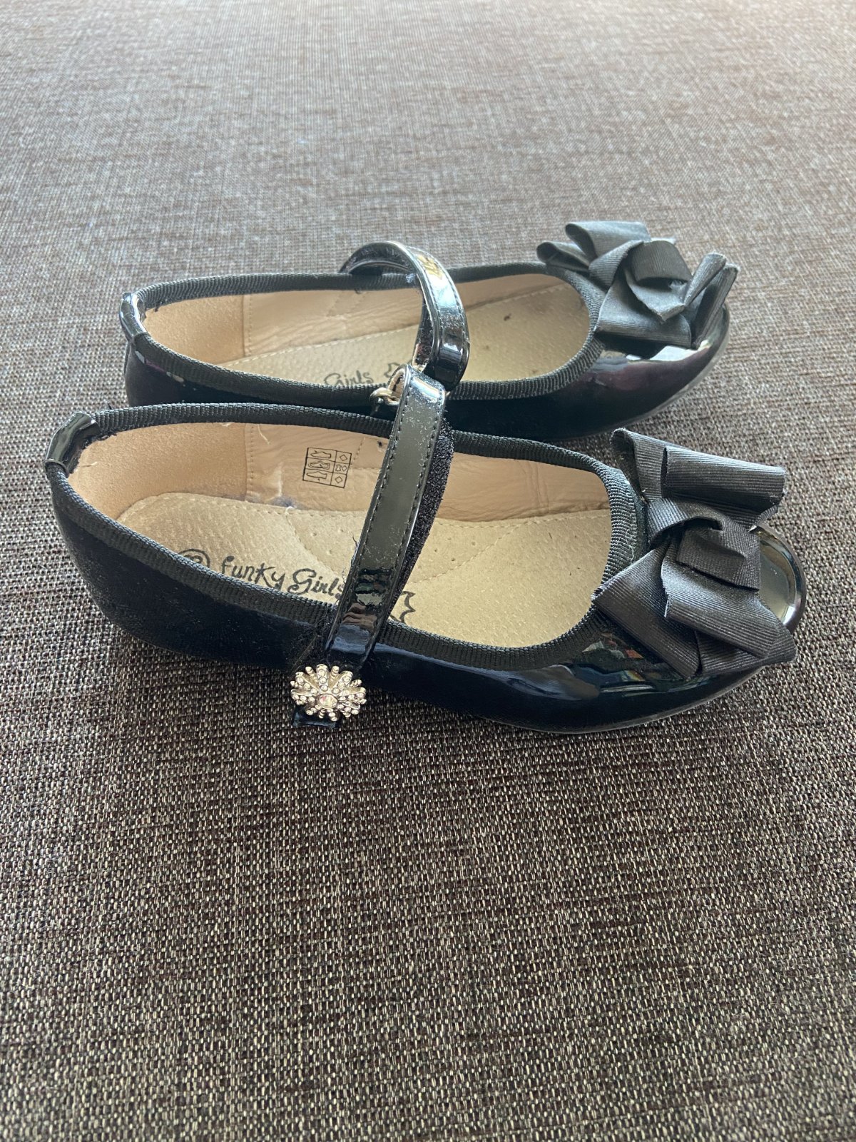Pekné lakovky s detailom lesklých kamienkov na pracke. Bez poškodení, päta takmer nevydratá, nosené len párkrát, príležitostne. Kožená anatomická stielka. Cena bez pošty