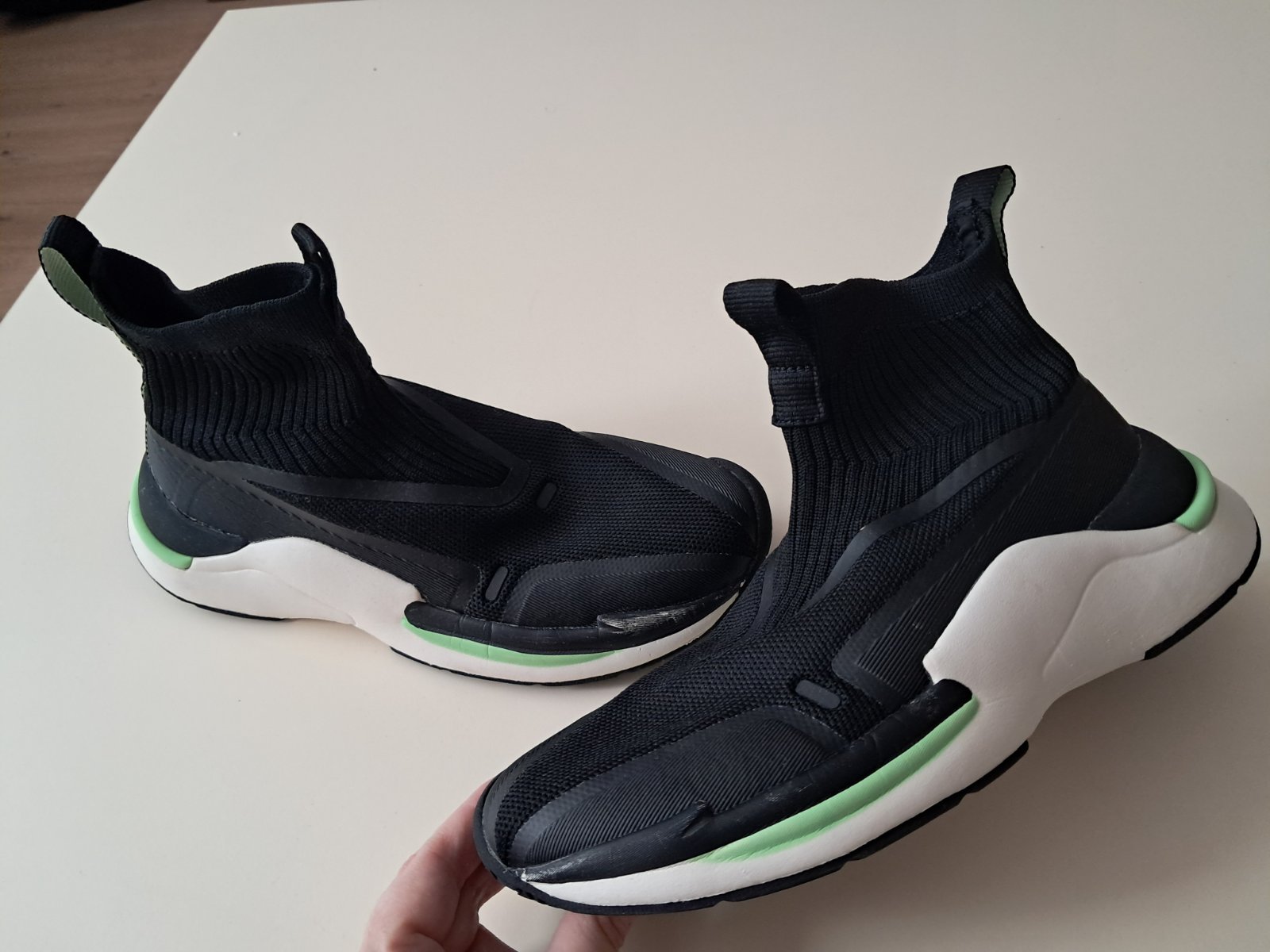 Perfektne tenisky ponozkove bez šnúrou zipsov. Pofotene zo vsetkych uhlov.