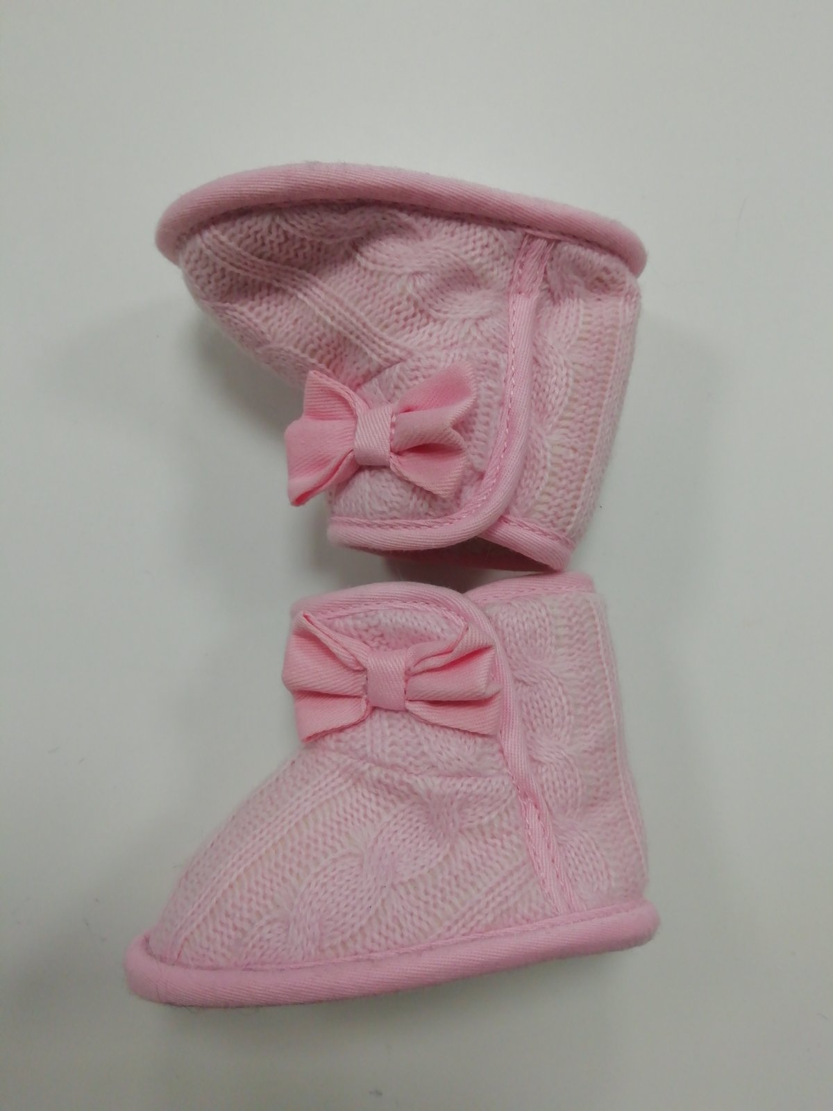 Ružové teplé pletené capačky / čižmy s mašľou