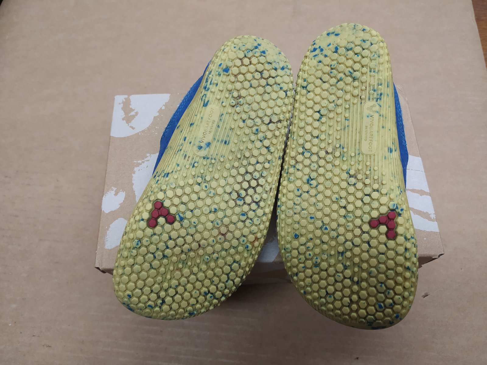 Ľahučké, vzdušné tenisky, syn ich mal rád, mali sme aj vo väčších číslach. Podrážka aj suché zipsy v poriadku, žiadne poškodenia. Vpredu jeden fliačik od bublifuku, cistila som len vodou, možno nejakým prostriedkom zíde.