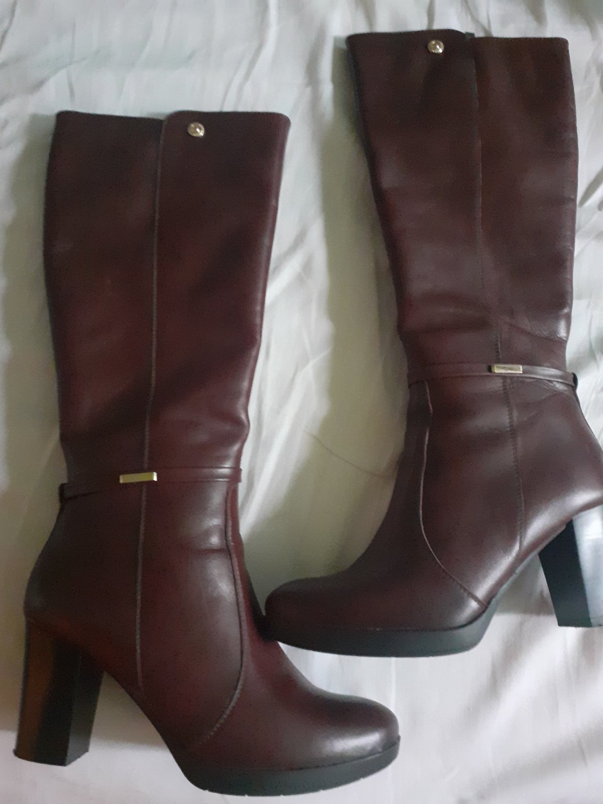 Moje vysnívané kožené čižmy kúpené v UK, nosené len zopár krát lebo sme si nesadli, priúzke na moje chodidlá. Takže sa ich radšej vzdávam, aby na ne nesadal prach. Žiadne škrabance no na pravej čiž...