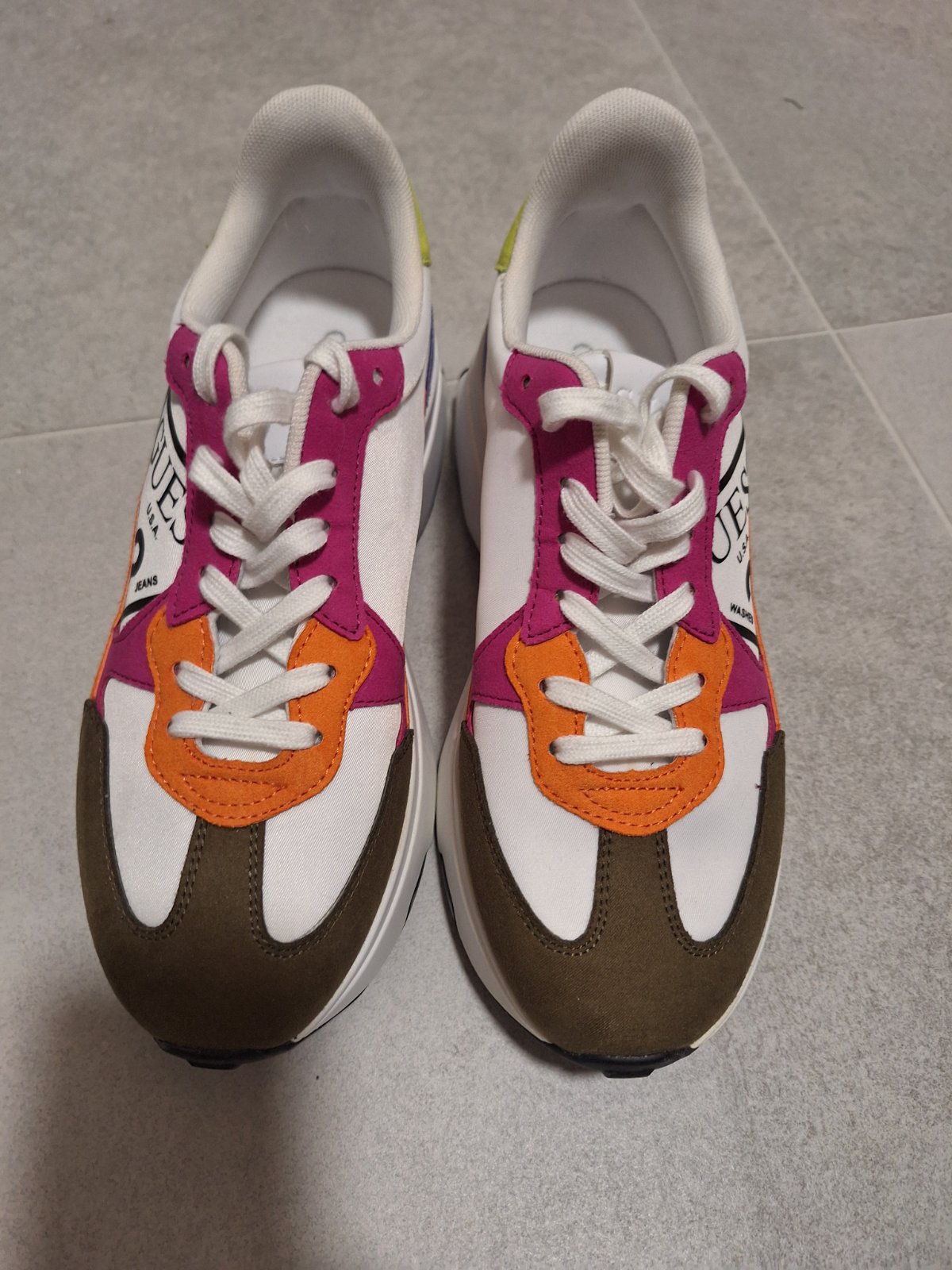 Nosené značkové tenisky Guess, kus oskrete špičky,ale keď sa zatru hnedým kremom na topánky,nebude to ani vidno