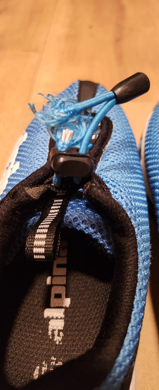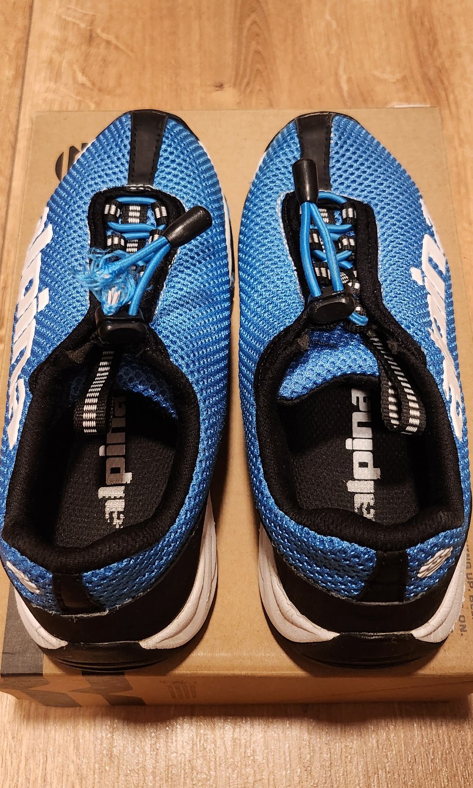 Ľahké tenisky Alpina, od Protetika. Veľkosť 33. Sťahovanie na gumu. Na ľavej pretrhnutá. Treba skrátiť alebo vymeniť.