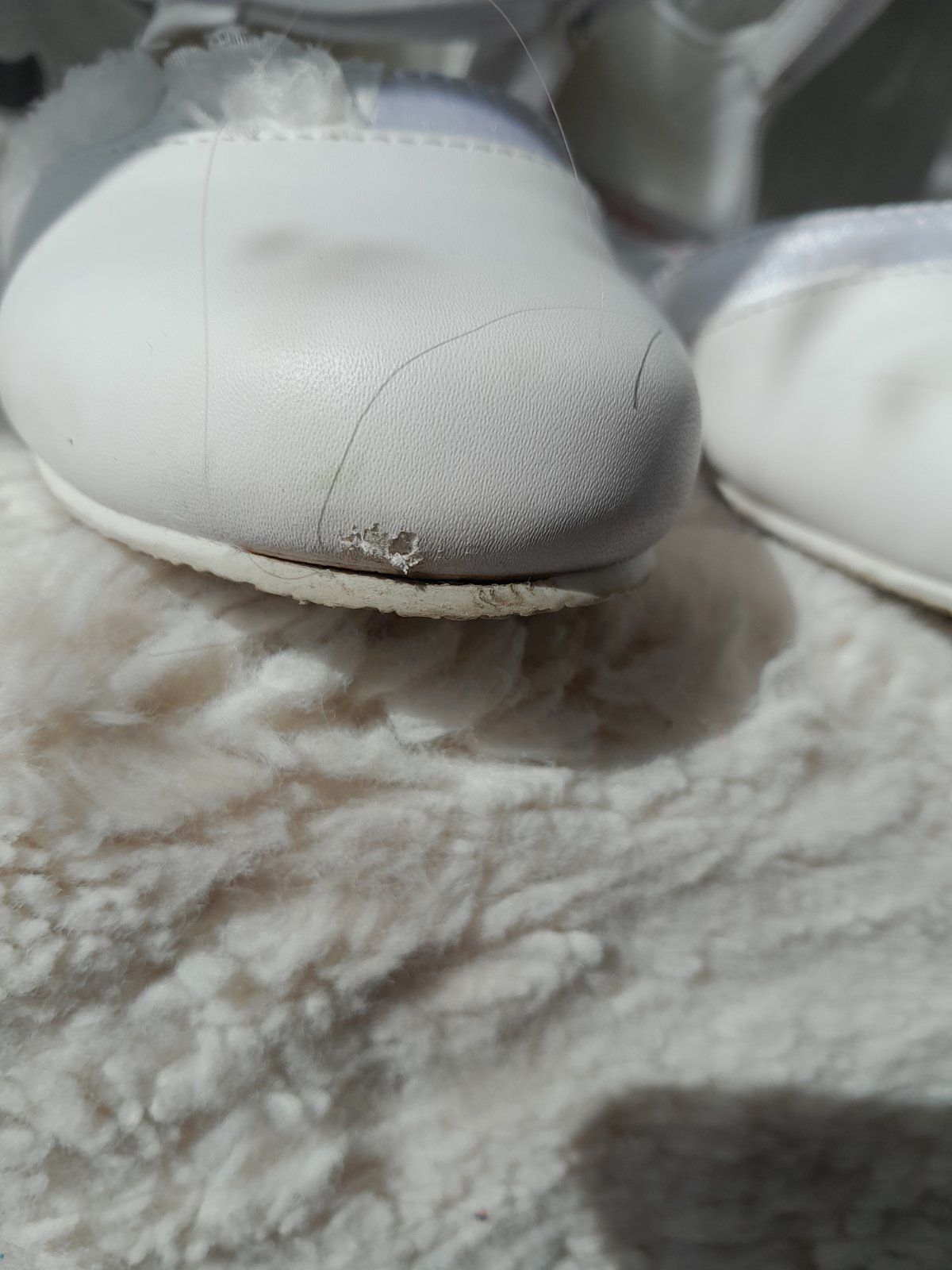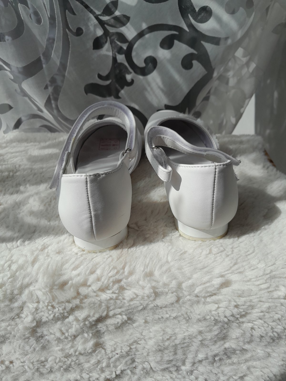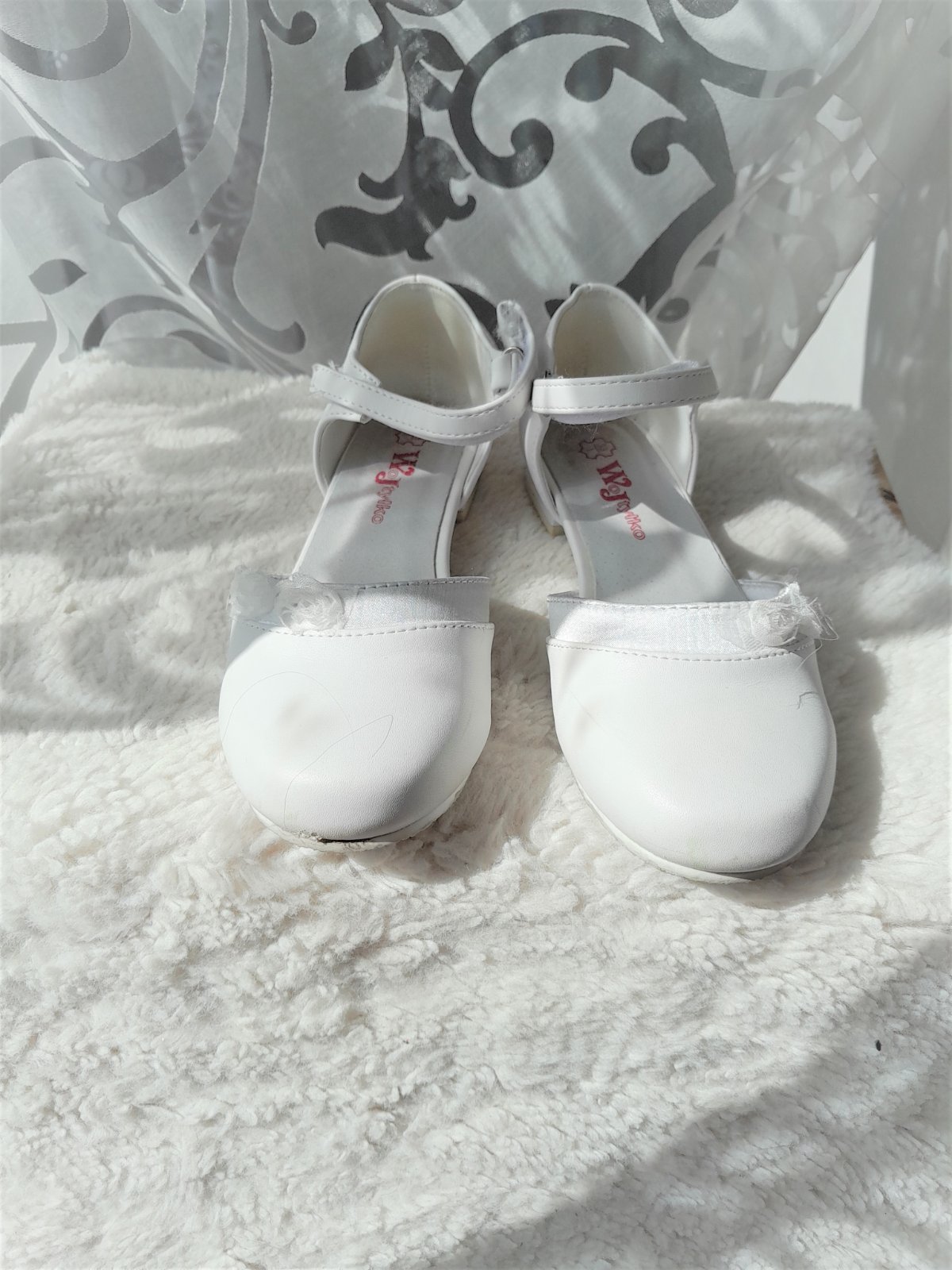 obuté jeden krát na 1.sv.prijímanie,napriek tomu je okopnuté vpredu-viď foto-ale je to zo spodnej strany,nie hore..na suchý zips-pôvodná cena 30e-...kuk aj na iné moje inzeráty