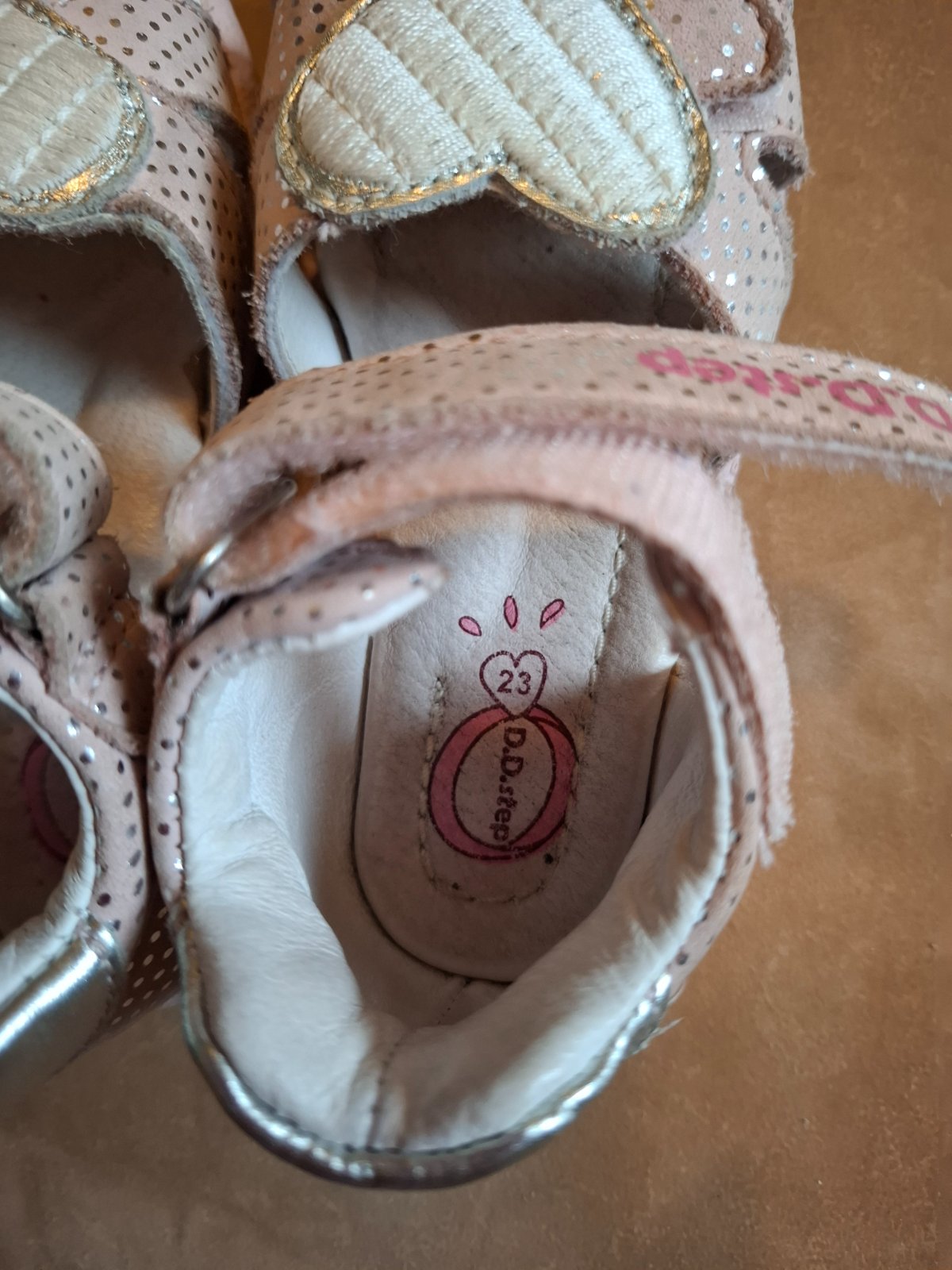 Ponúkame krásne kožené sandálky obľúbenej značky D.D.Step. Sandálky sú celokožené, majú zapínanie na dva suché zipsy, sú stredne ohybné, čo prispieva k zdravému vývinu nožičky a klenby. Päta je zat...
