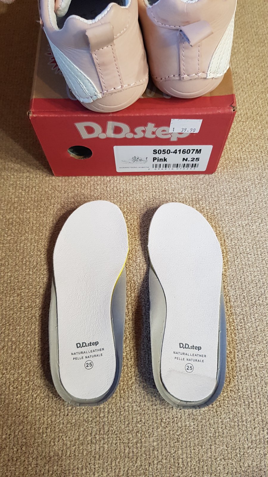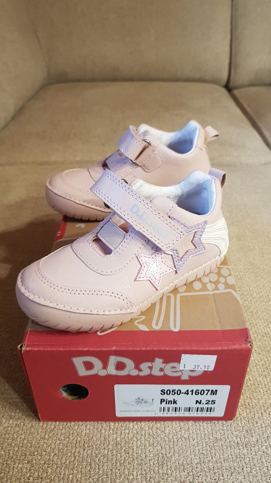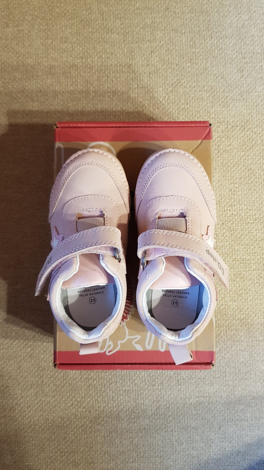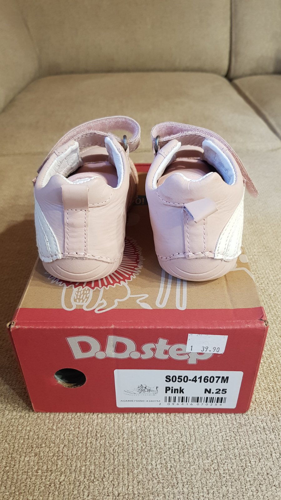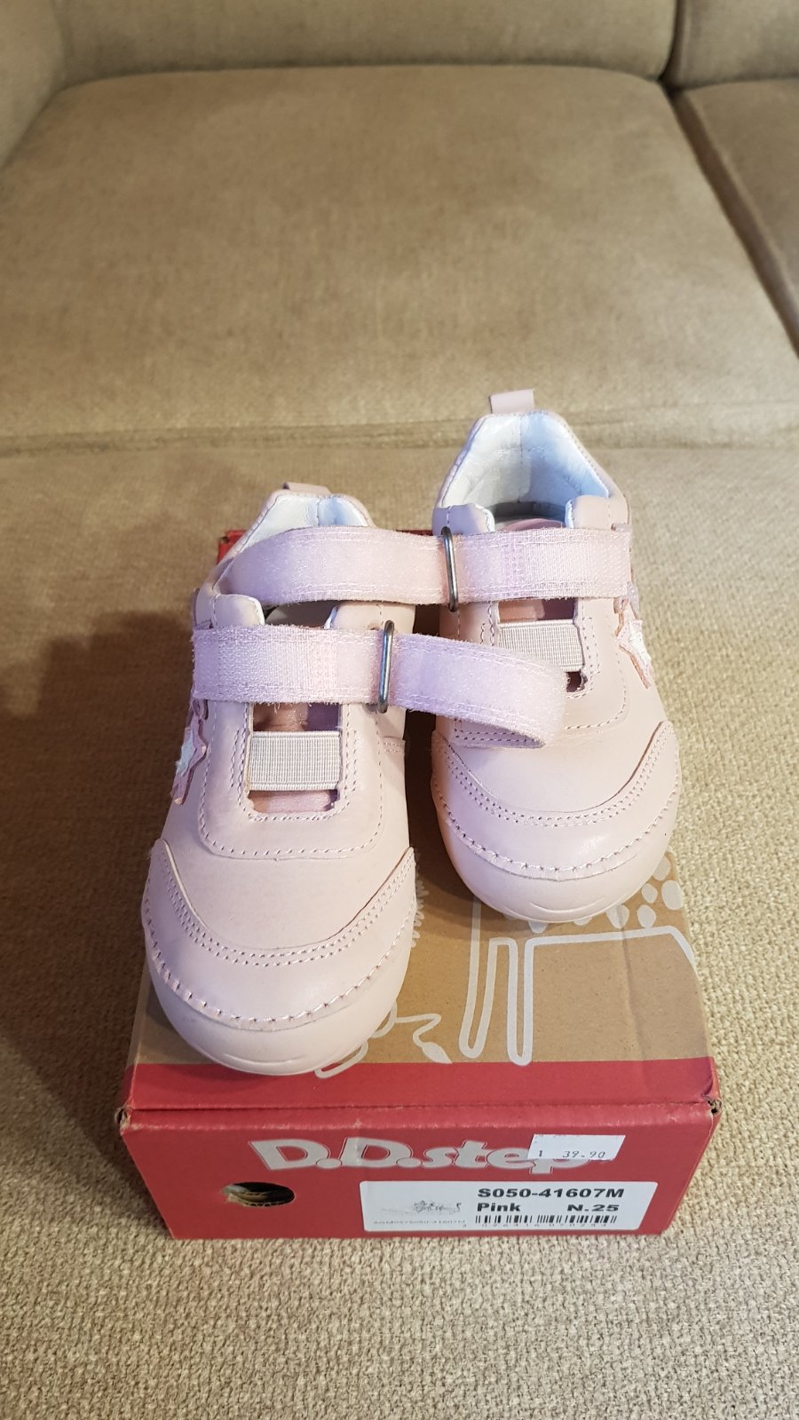 Prechodné celokožené topánky DD step, veľkosť 25, vnútorná stielka 16 cm, úplne nové, nepoužívané, len vyskúšané. Mám od nich aj krabicu aj visačku. Kupované minulý rok na jar, bohužiaľ vtedy boli ešte veľké, tento rok sú už zasa malé, takže posúvam ďalej. Pôvodná cena 40 €. Predávam za 35 € + pošta