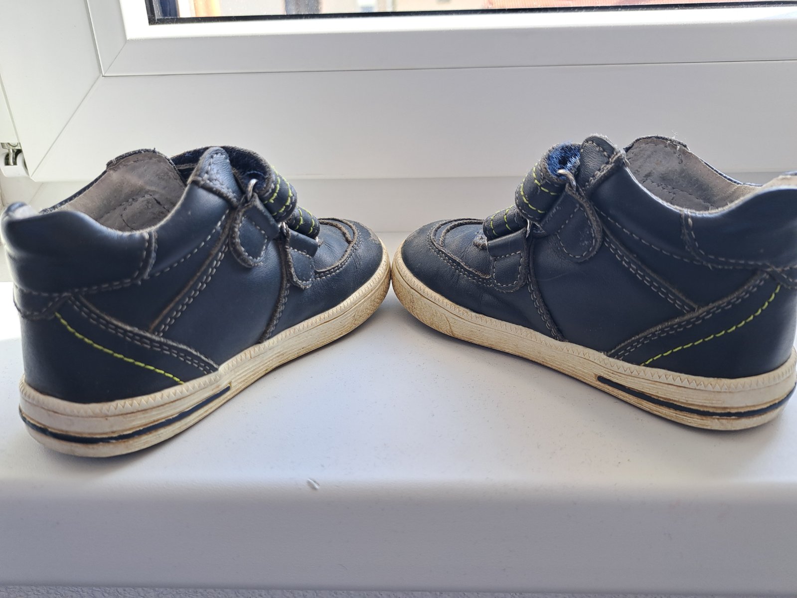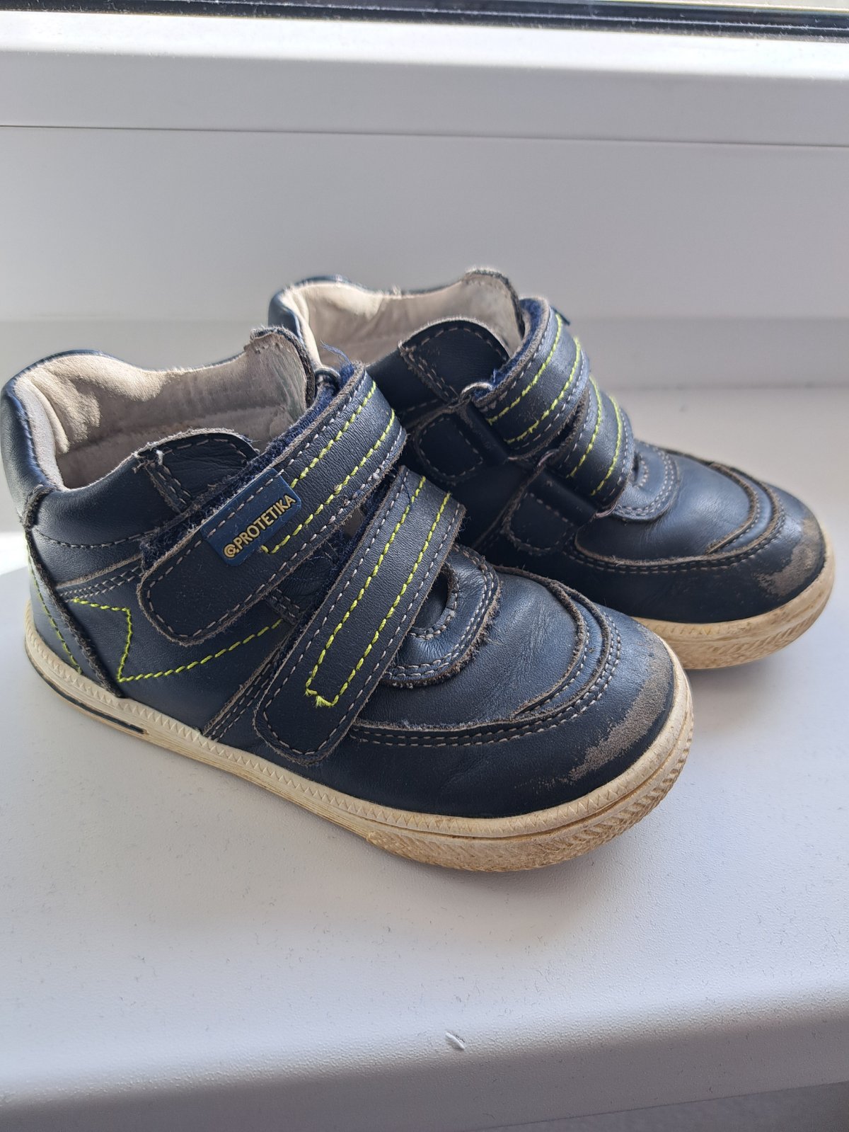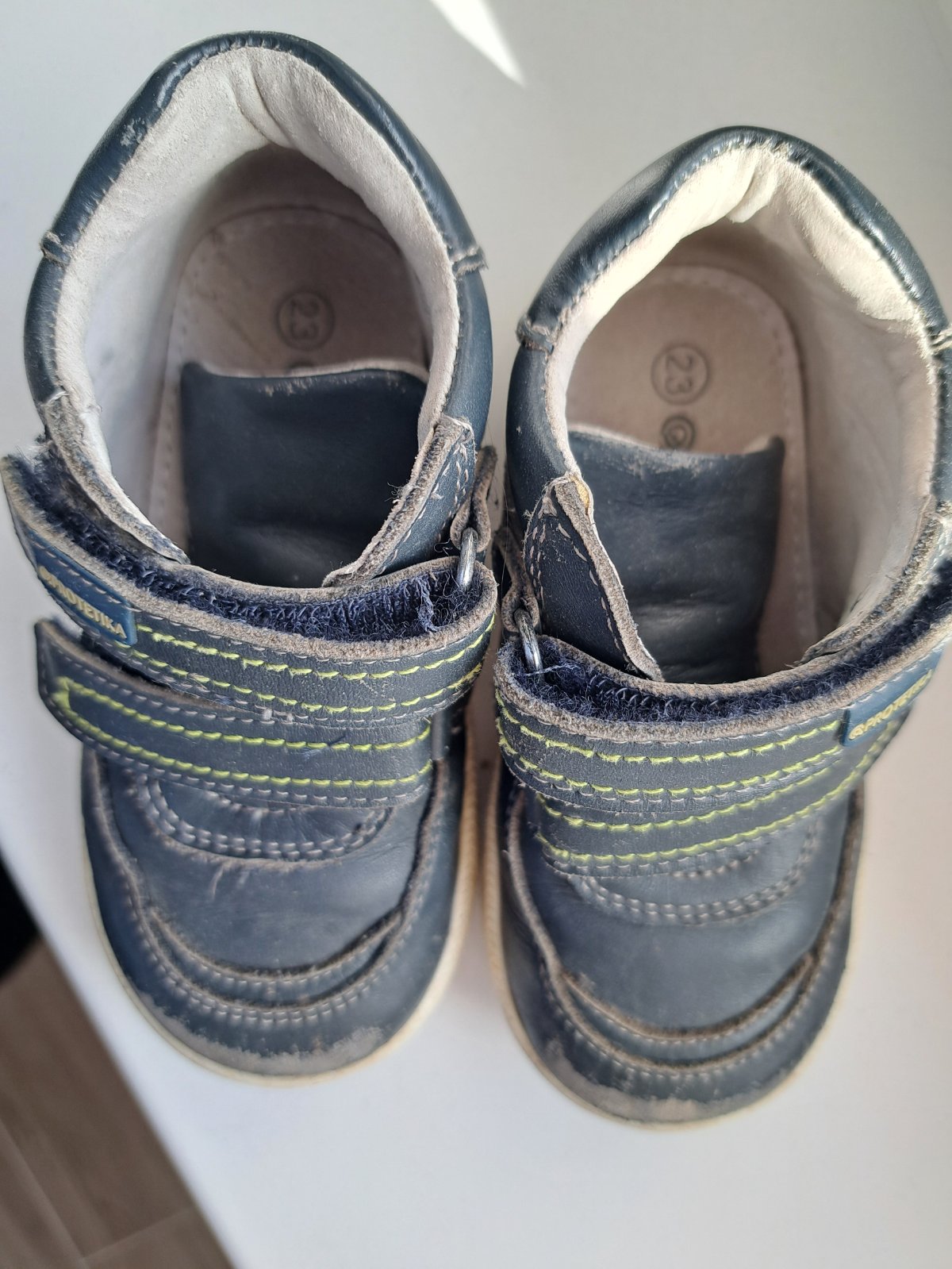Nosené 1 dieťaťom, dobrý stav. Špičky trochu ošúchané, stav viď foto. Kožené. Vd 15cm, vš 6cm.
