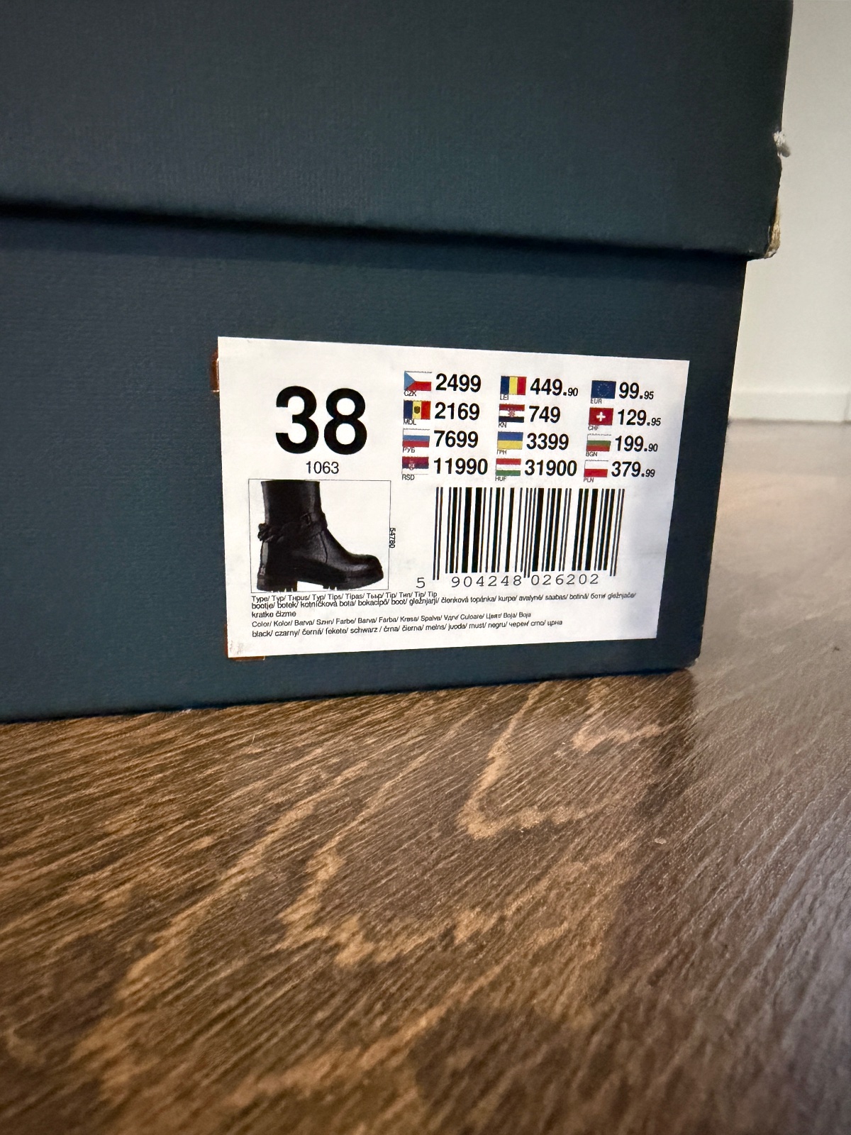 Členkové čižmy Badura z kože v čiernej farbe. Topánky majú 3 cm hrubú podrážku. Na vnútornej strane sa nachádza zips s logom značky. Na zadnej strane sa nachádza aj ozdobná čierna plastová retiazka. Topánky sú veľmi pohodlné a vyrobené z kože. Štandardná veľkosť je 38. Maloobchodná cena je približne 100 €.