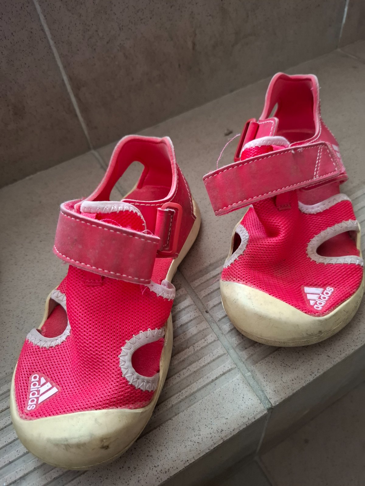 Nosené Adidas sandále, špičky z odrážadla trochu ošúchané, suchý zips drží pevne. Cena symbolická. Poštovné ako balík na pobočku pošty 3.90€