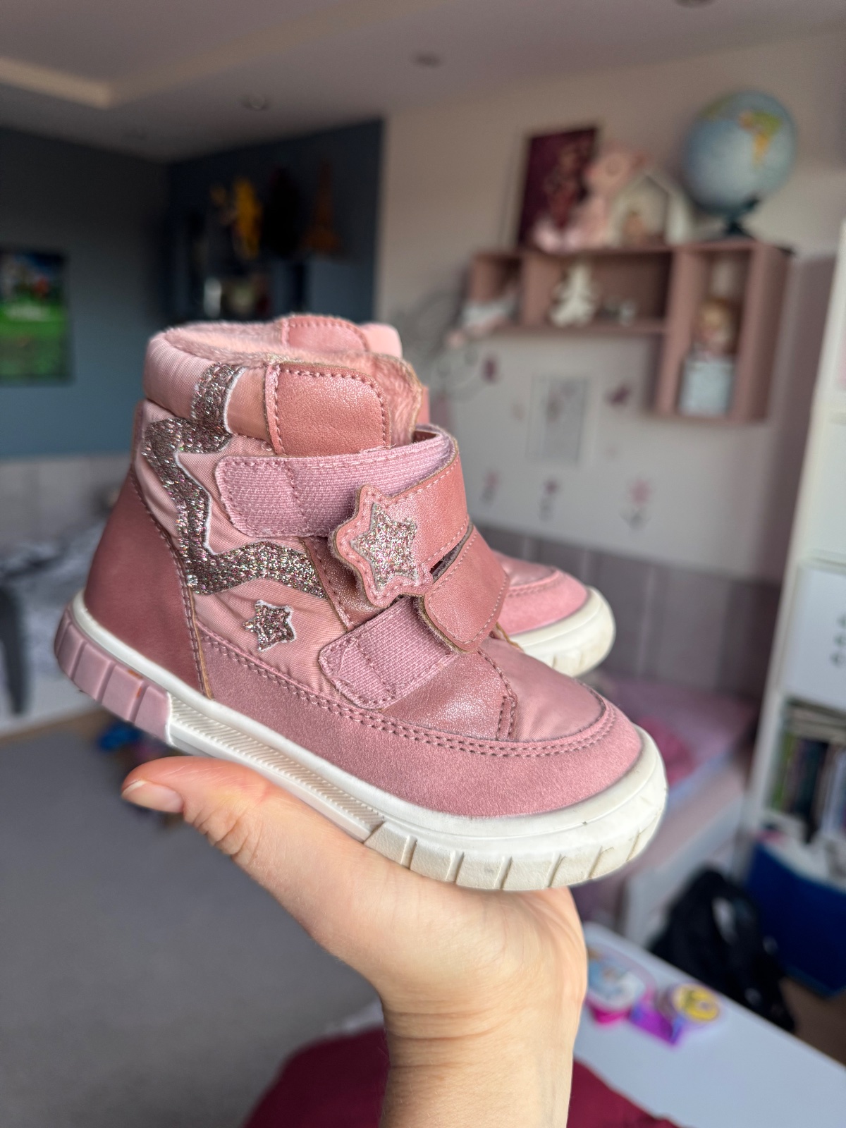 V dobrom nosenom stave, vhodné aj do škôlky na jeseň, keď je už chladno ale ešte to nie je na čižmy. Sucháče držia silno. Ľahko sa obúvajú, roztvoria sa na široko. Sú praktické, odporúčam! PC 33€ VD 15cm