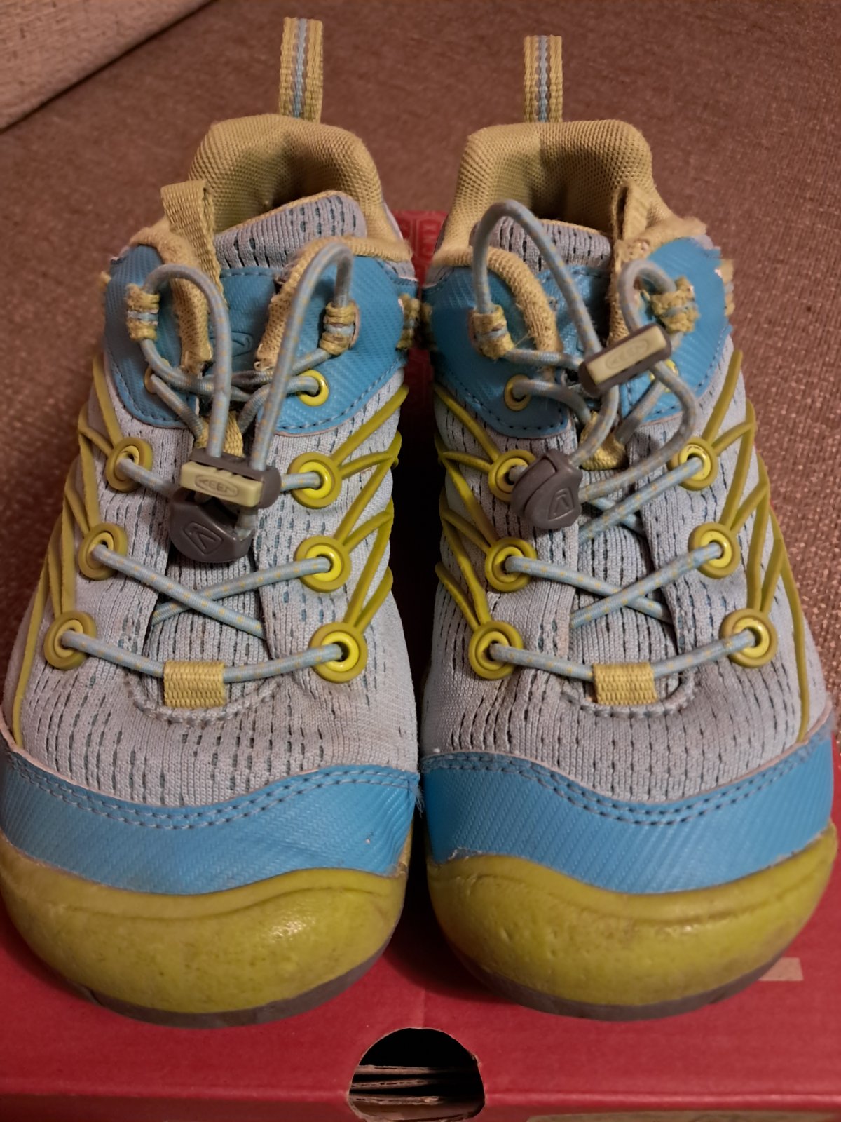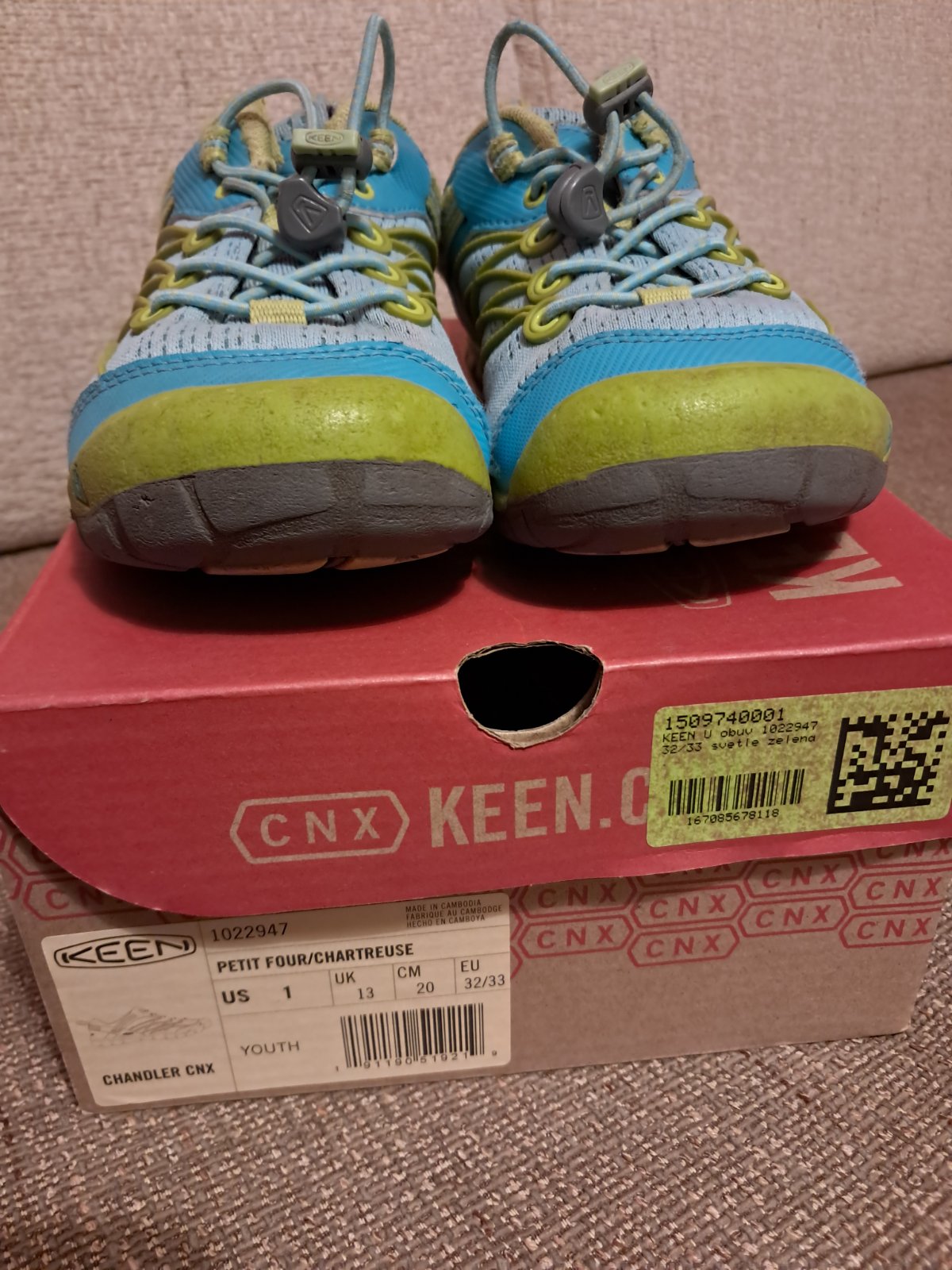Predám tenisky Keen Chandler CNX, veľkosť 32/33. Je to alternatíva barefoot. Sú v dobrom stave, kupované nové, nosené 1 dieťaťom. Majú ošúchanie pri šnúrkach, viď foto. Predám za 20 Eur + poštovné.
