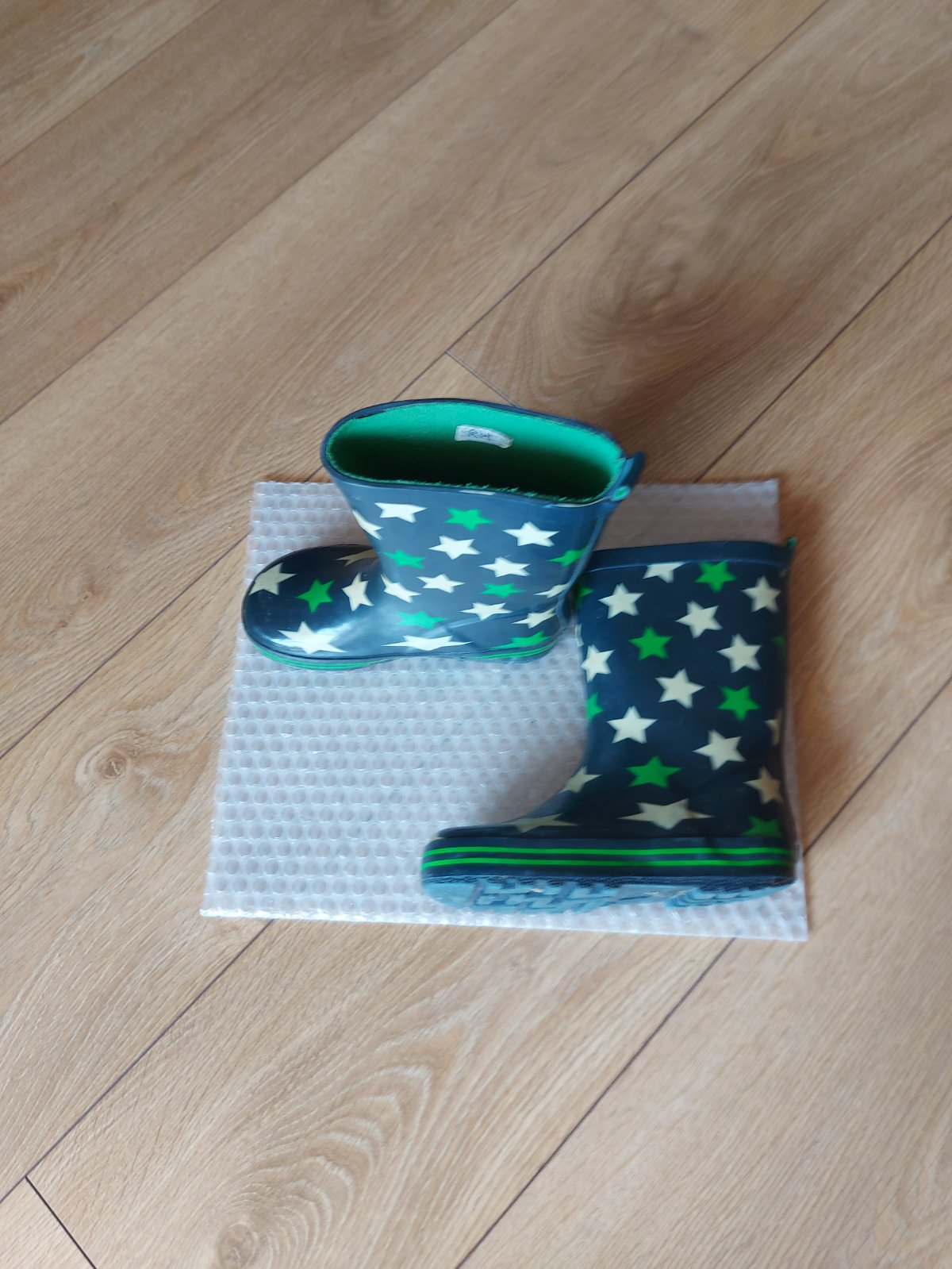 Krásne teplučké gumáčiky. Až po odstrihnutí výsačky sme skúšali a zistili, že ich neobujeme - vhodnejšie pre chudšiu nožičku. PC 26€