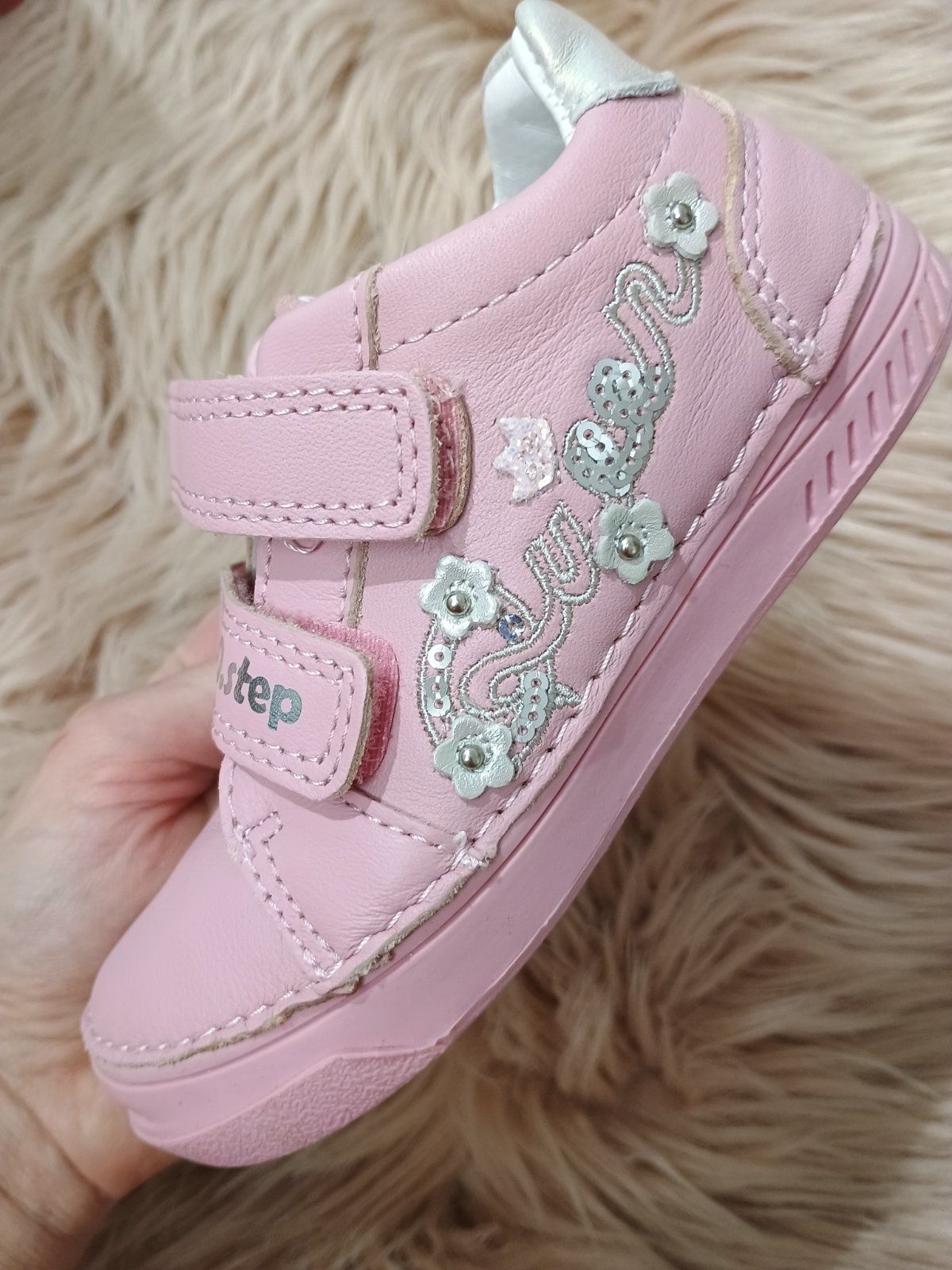 Dievčenské kožené topánky od renomovanej značky D. D. Step sú výnimočné svojou tvarovanou klenbou a vyberateľnou ortopedickou vložkou. Vďaka pevnej päte poskytujú detskému chodidlu stabilitu. Zapínanie na suchý zips je rýchly a pohodlný spôsob na nazúvanie, a tiež vedie dieťa k samostatnosti. Vpredu je špička s vyvýšenou gumou, ktorá ochraňuje topánku pred okopaním a zvyšuje jej životnosť.