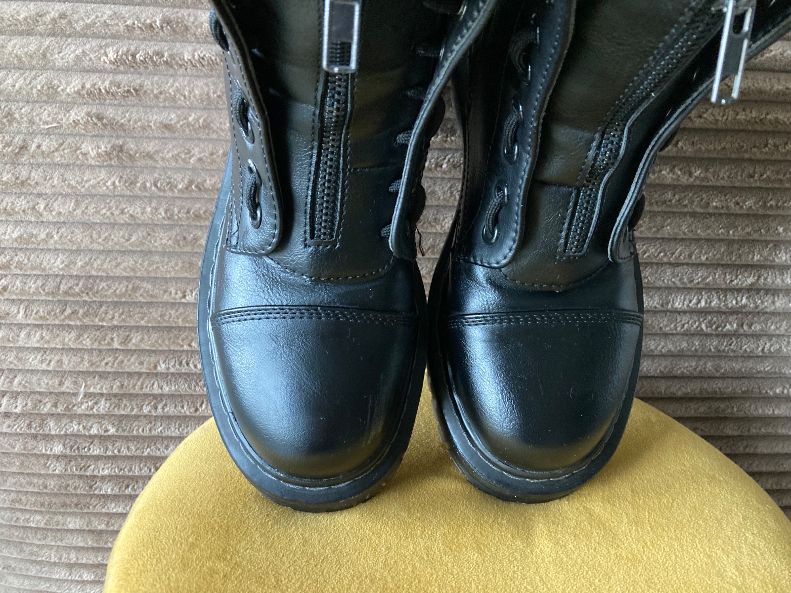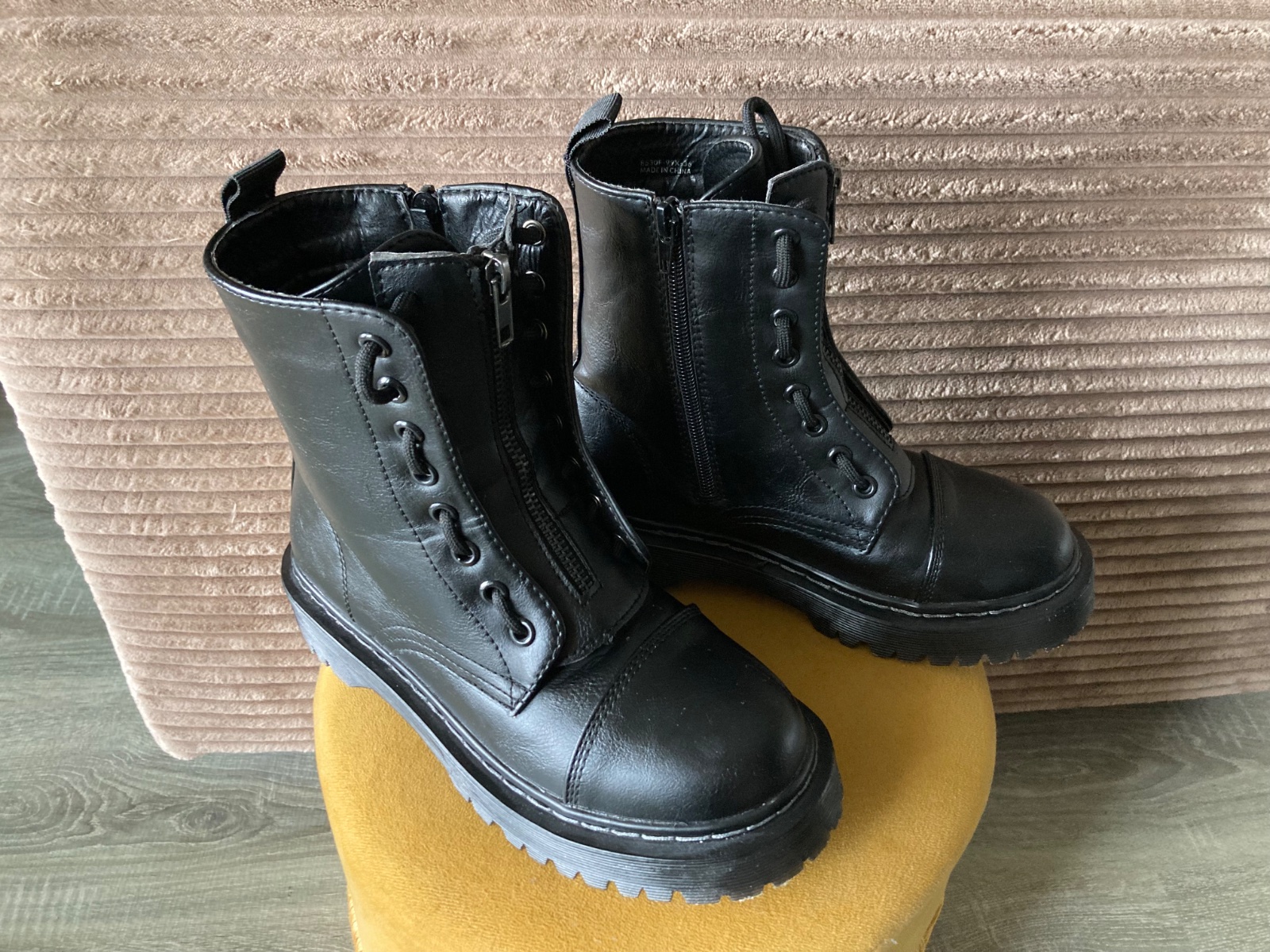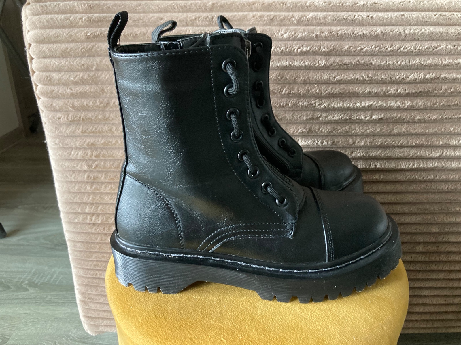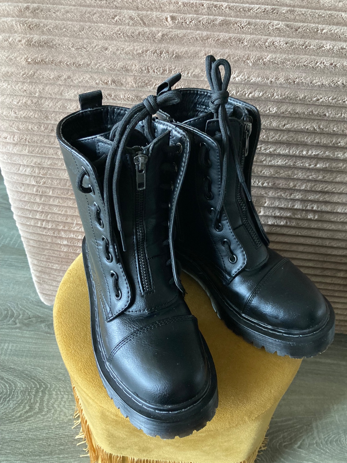veľmi pekný stav, krásne bez poškodení, málo nosené, na šnúrky, na boku a vpredu zips, podrážka nepoškodená, len na jednej topáke vpredu ošuchy, štýlové, my sme mali šnúrky nezaviazané tak ako na fotkách, môžu sa aj navliecť klasicky