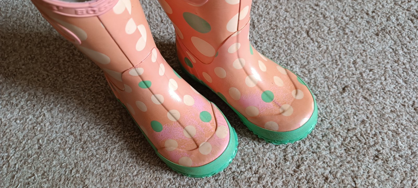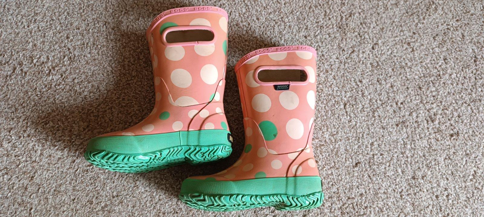 Dievčenské gumáky značky Bogs, v používanom stave, stále spoľahlivé čo sa týka ochrany pred vodou ;)