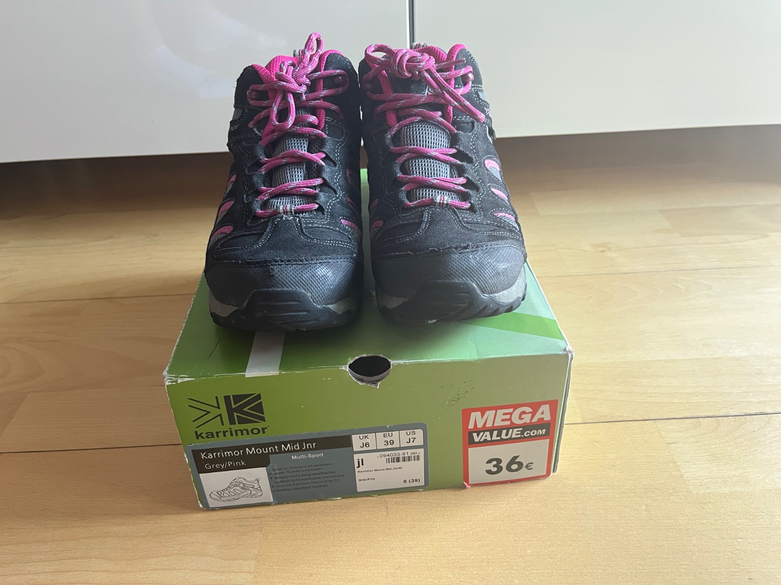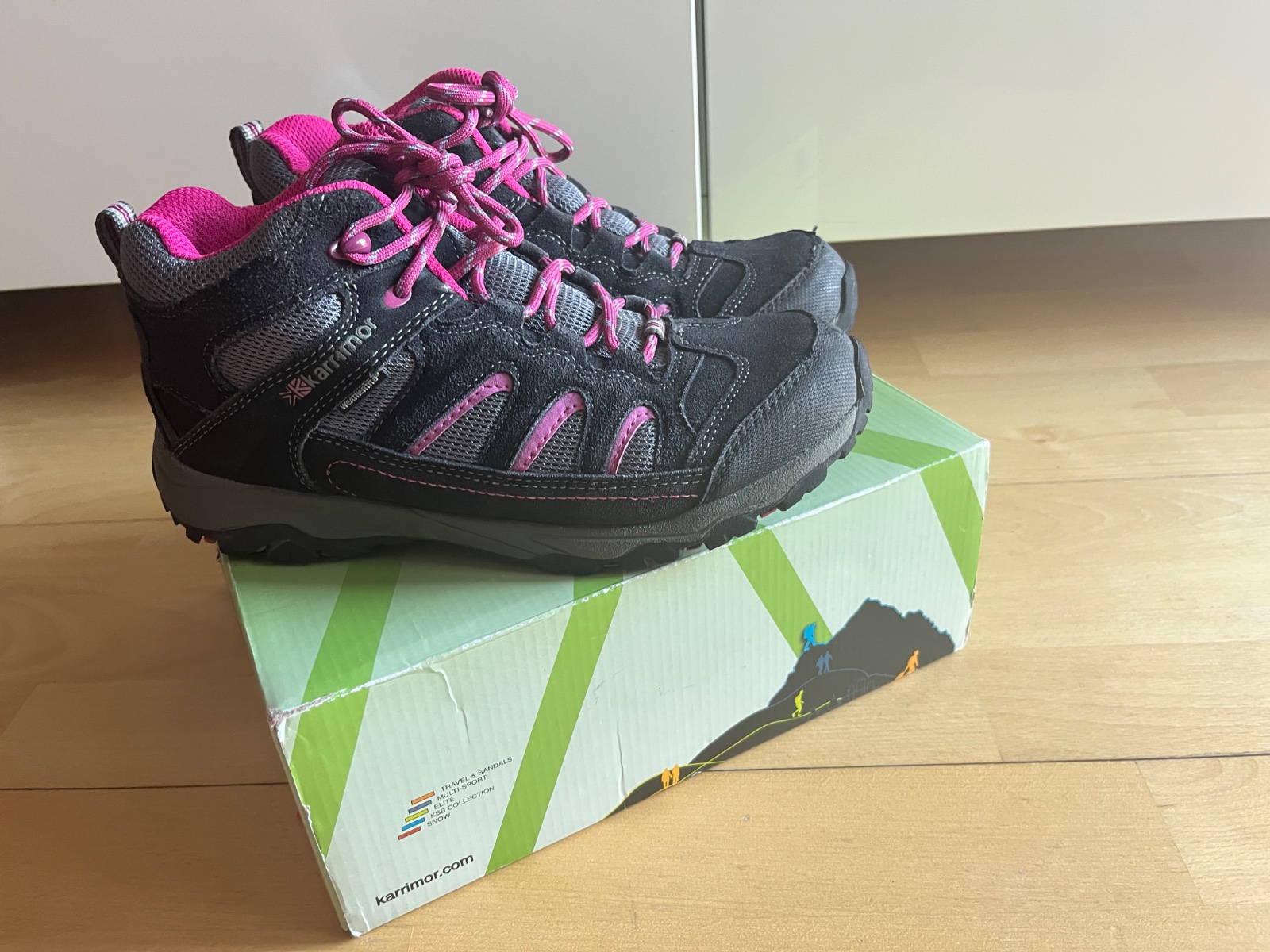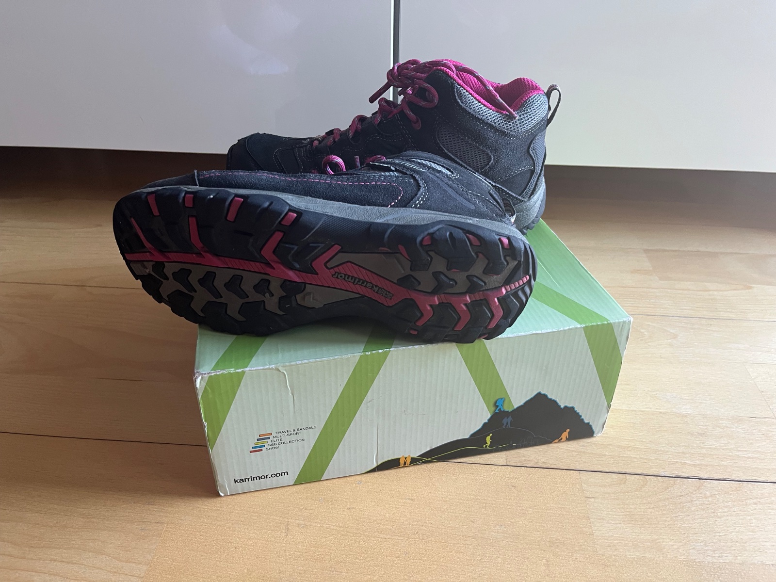 Predam juniorské trekove topanky Karimor, velkost 39 (vnutorna dlzka 26 cm), nosene, v slušnom stave, nemaju ziadne poskodenia. BA - Ruzinov, povodna krabica.
