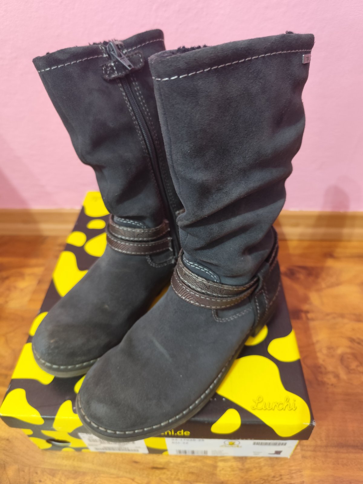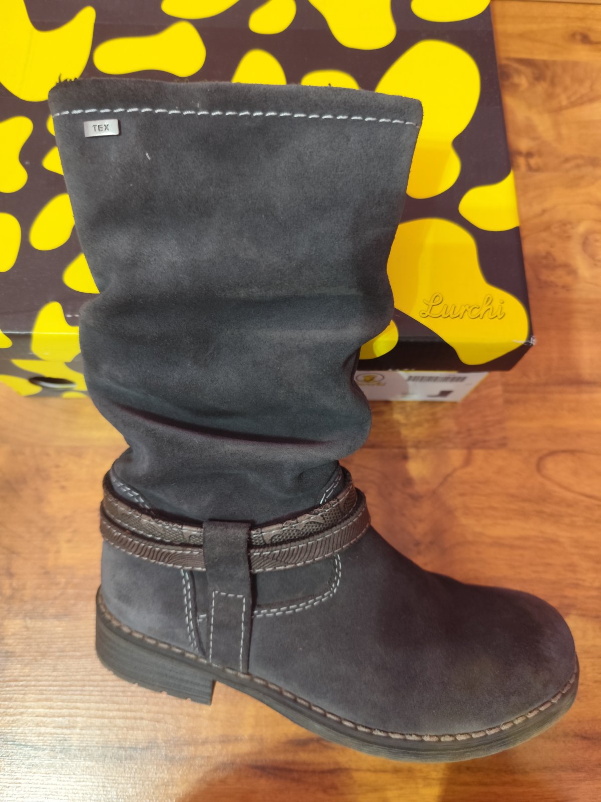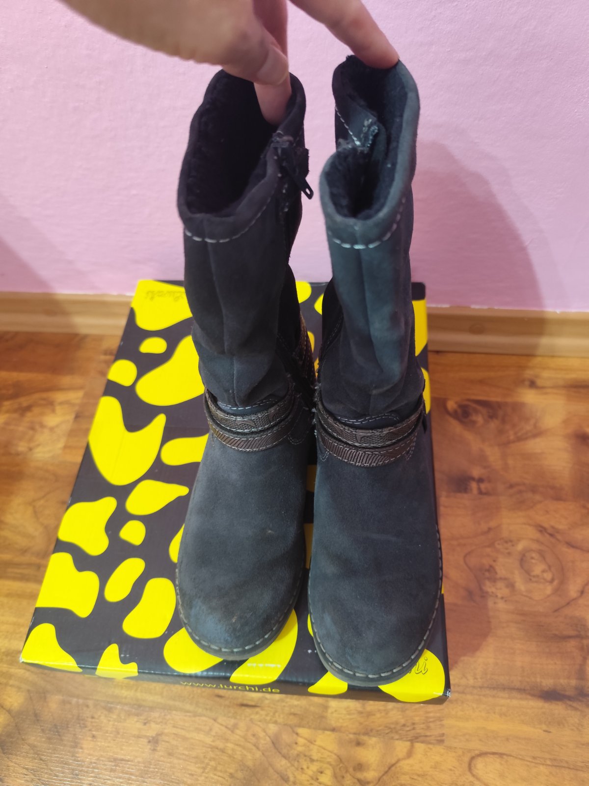 Krásne a teplé čižmy z brúsenej kože značky Lurchi (Salamander) , s TEXovou úpravou pre suchú nohu, boli pravidelne impregnované. Vnútorná dĺžka 20,5 cm (foto).