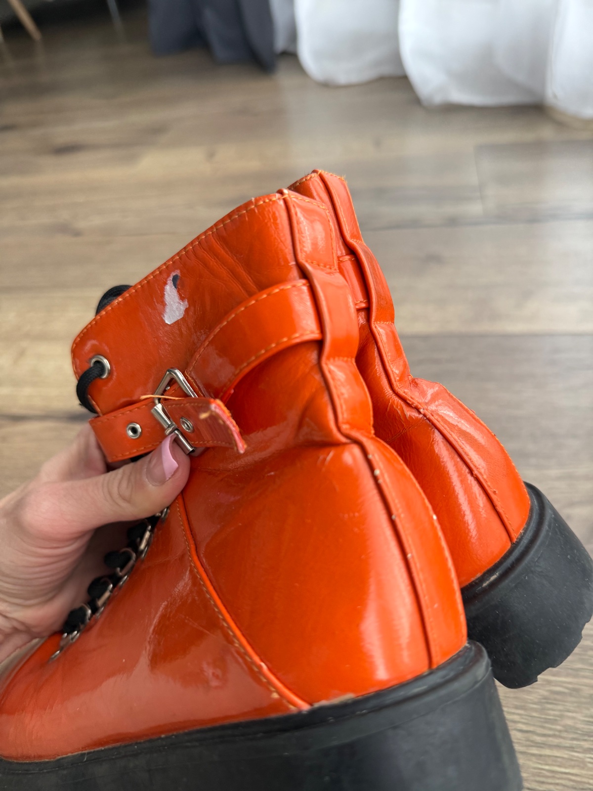 Predám tieto lodičky Perfektná farba, majú známky nosenia. Na niektorých miestach sú otlačené Cena 2,50e plus pošta lodička sa vpredu začína olupovať aj vzadu hore. Viď foto.