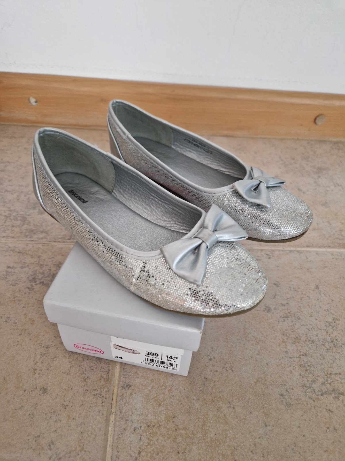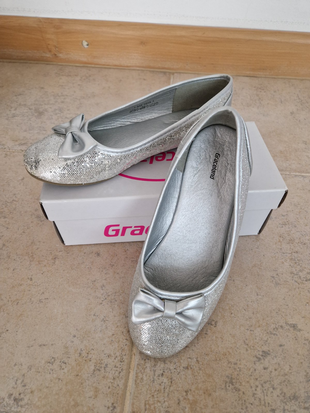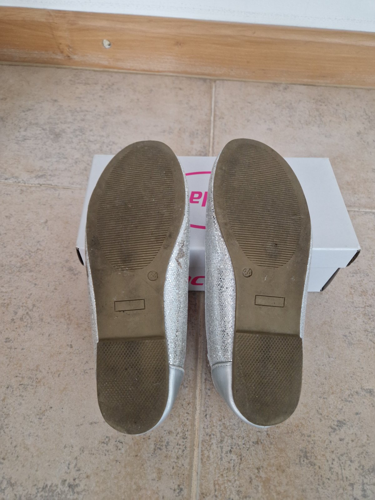 Strieborné 2x obuté balerinky, ako nové. PC 15E. vnútorná dĺžka 21,5-22cm. Vonkajšia dlzka 22,5cm.