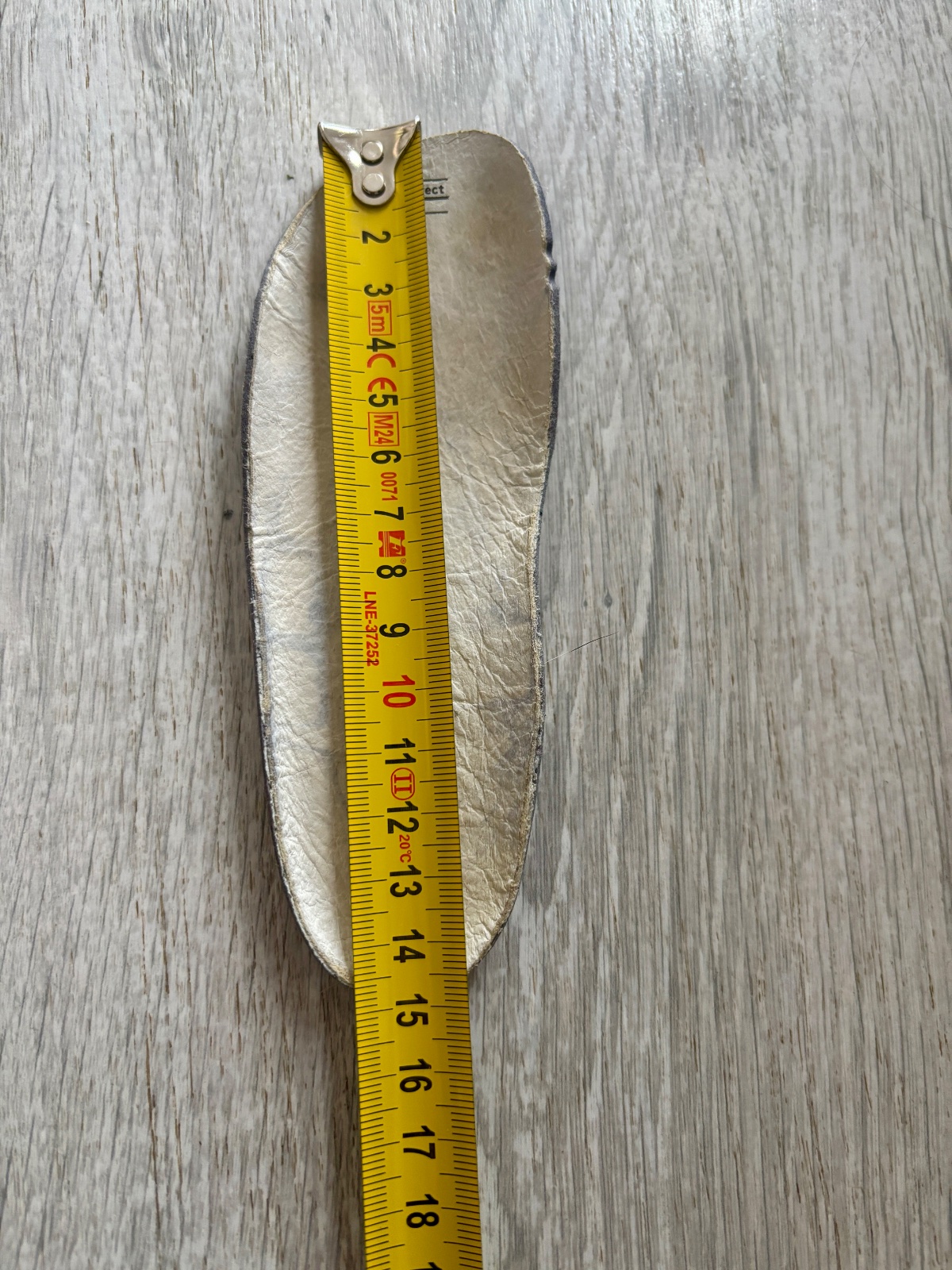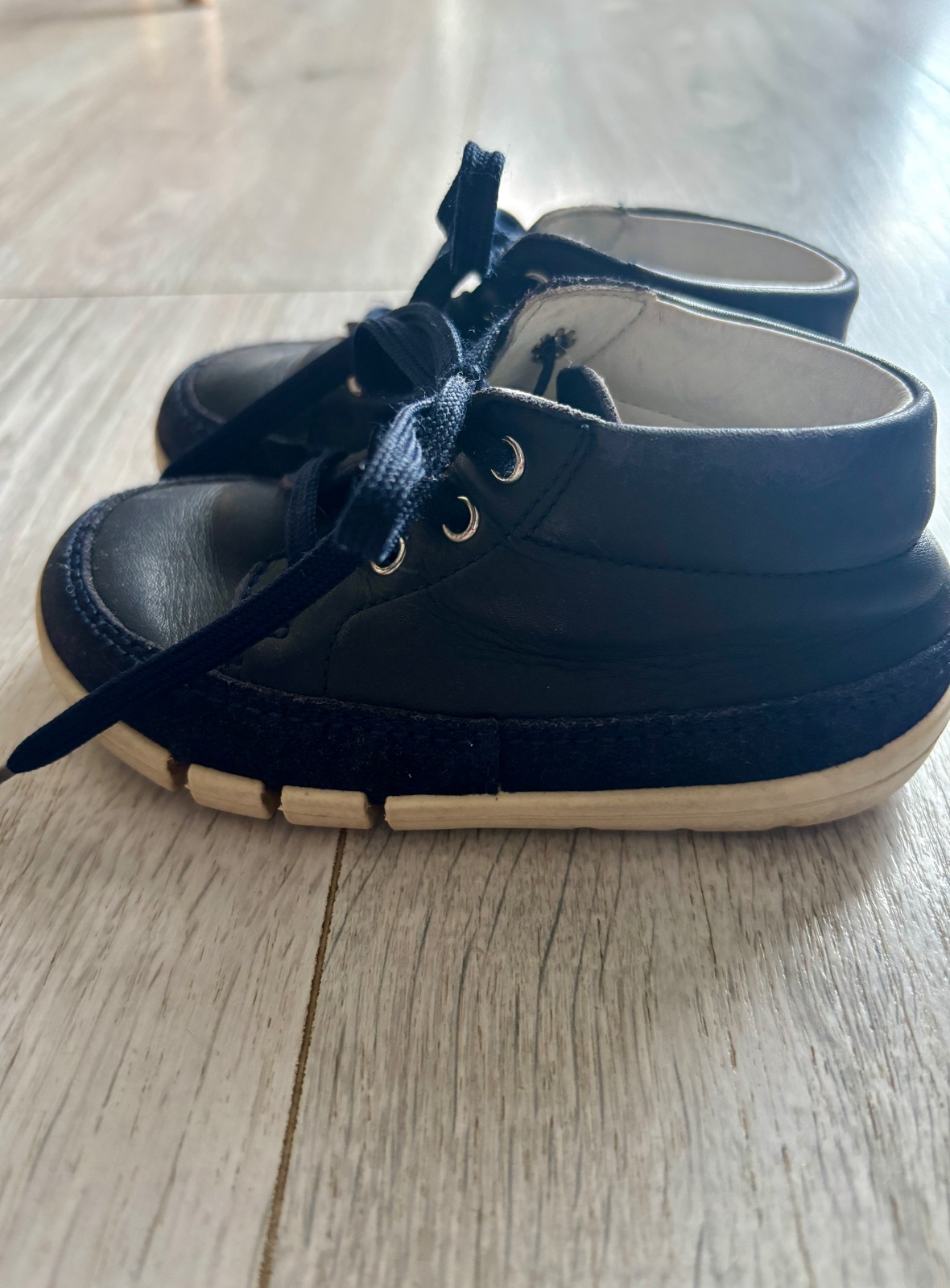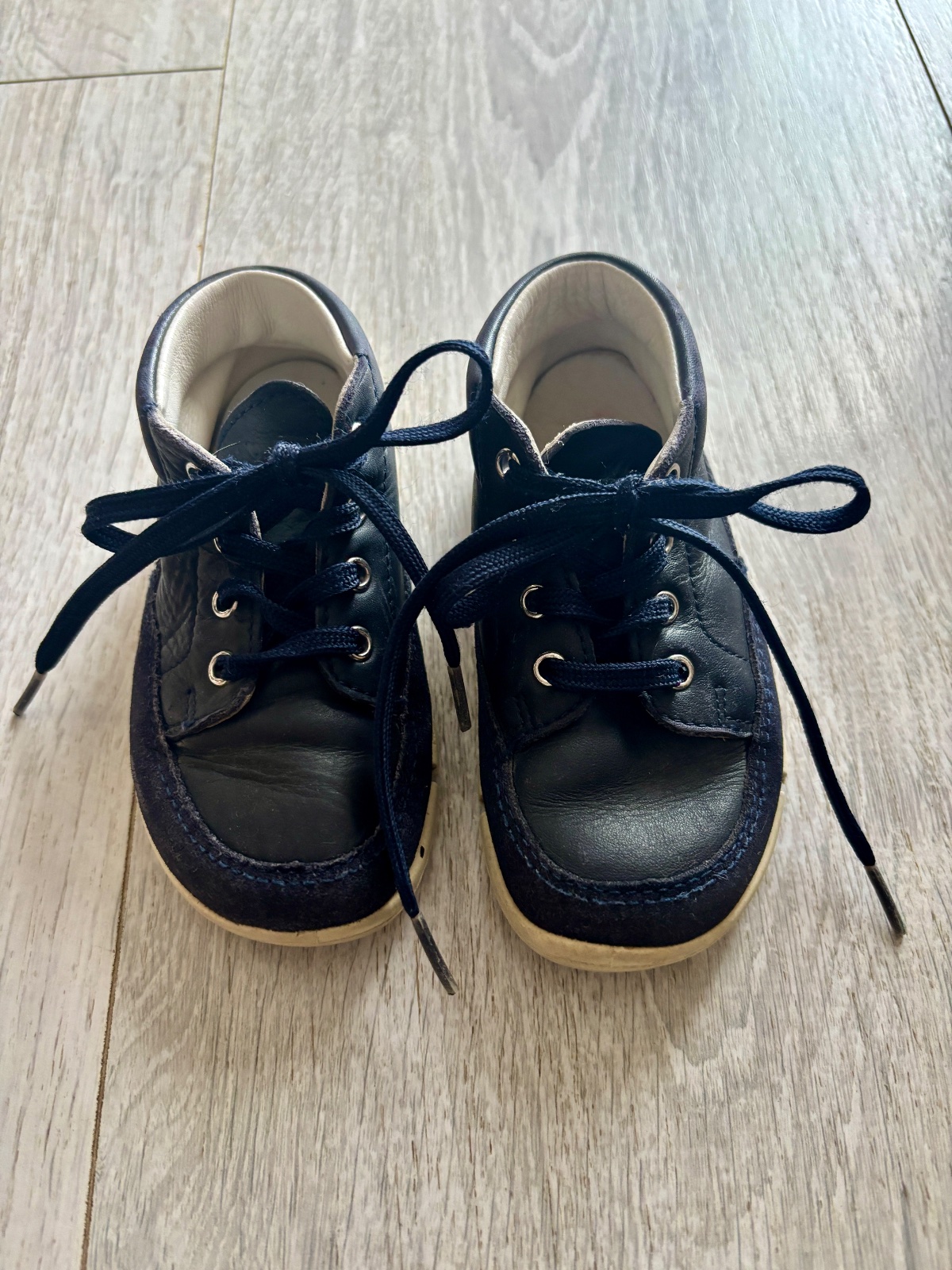 Celokožené, šnurovacie capačky, vnútorná dĺžka stielky 14,5 cm. Veľmi zachovalé, nosené krátko.