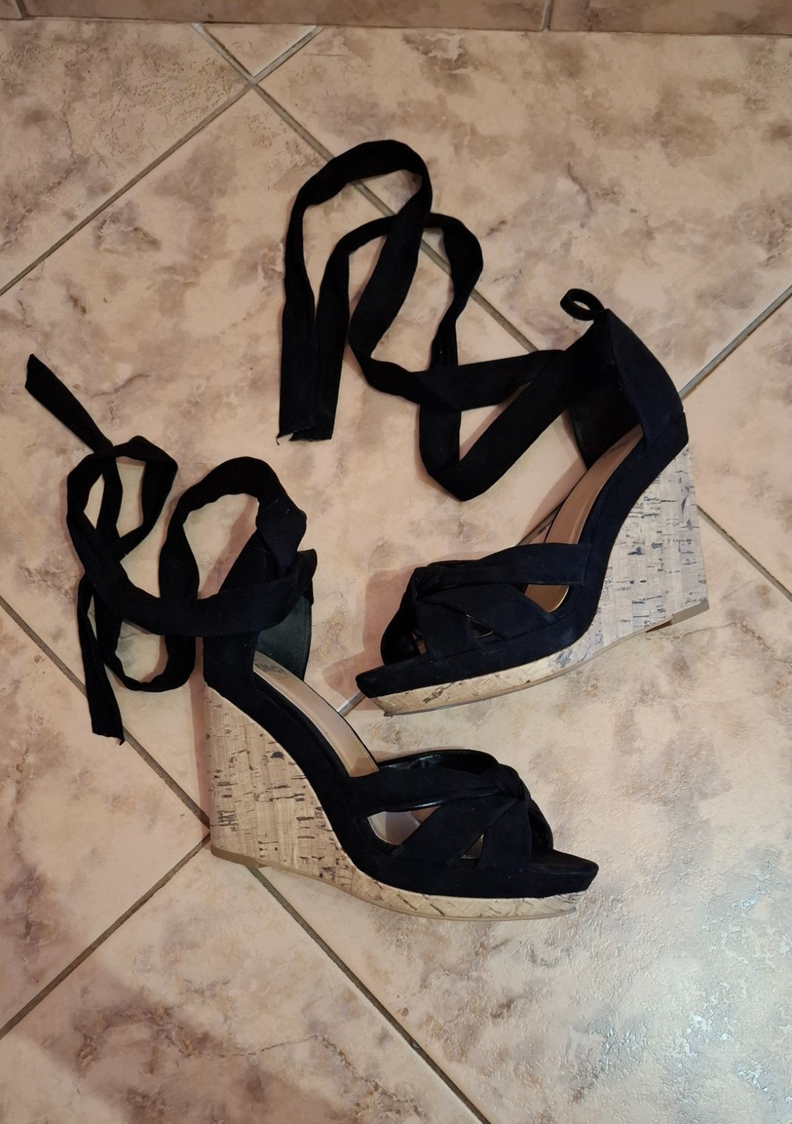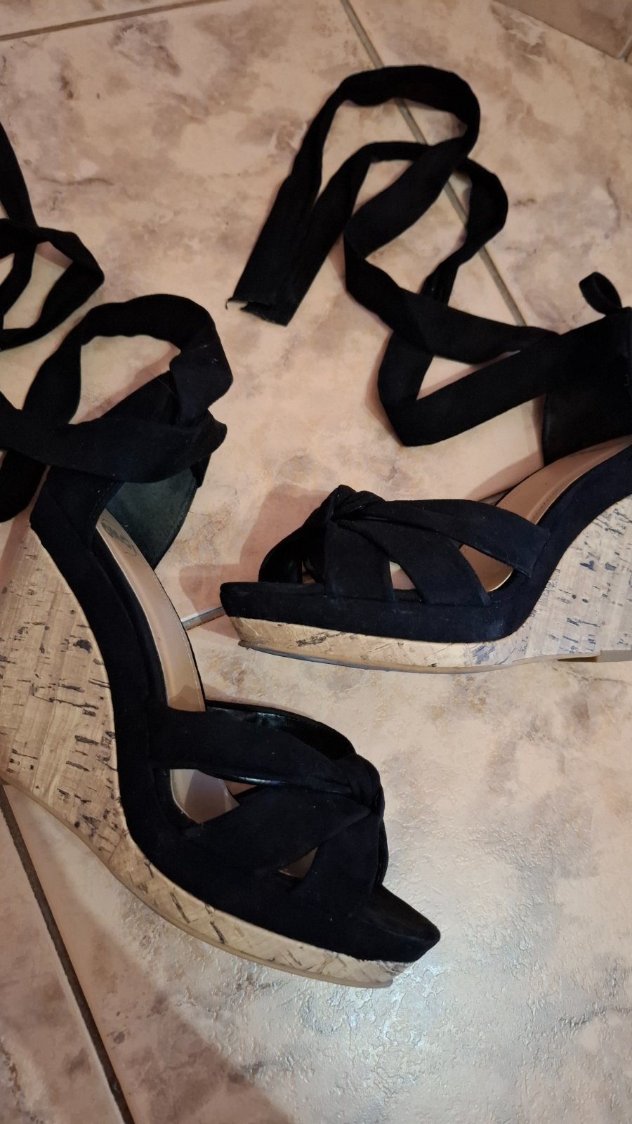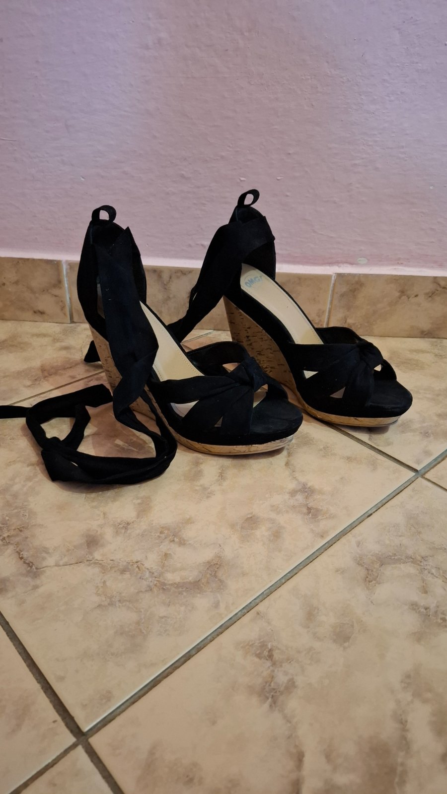 1x obuté, veľkosť 39 aj sedí, opotrebenie na remienku. S krabicou, opätok 11cm a platforma 3cm