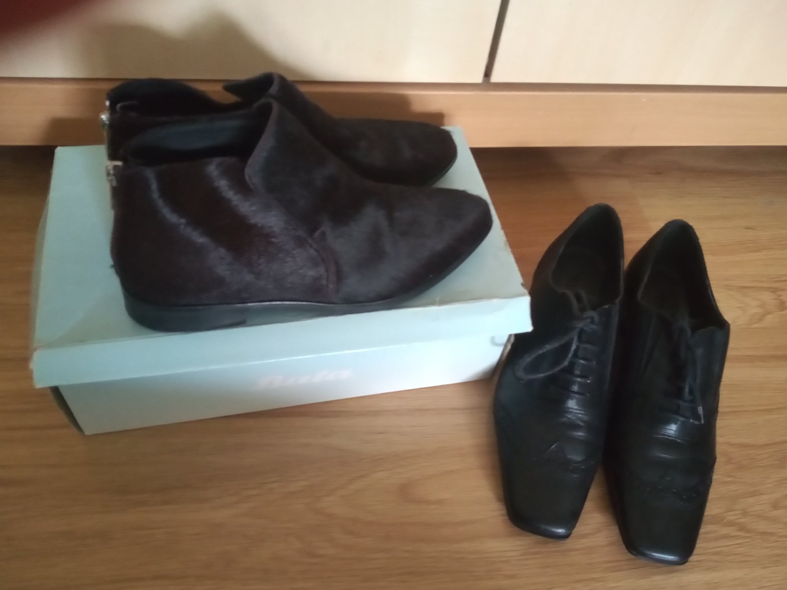 Predam kozene topanky (v prevedeni koza s vlasom) v super stave obute parkrat vel. 36 v a k nim darujem celokožené poltopánky zn. Tamaris vo veľmi dobrom nosenom stave veľ. 37