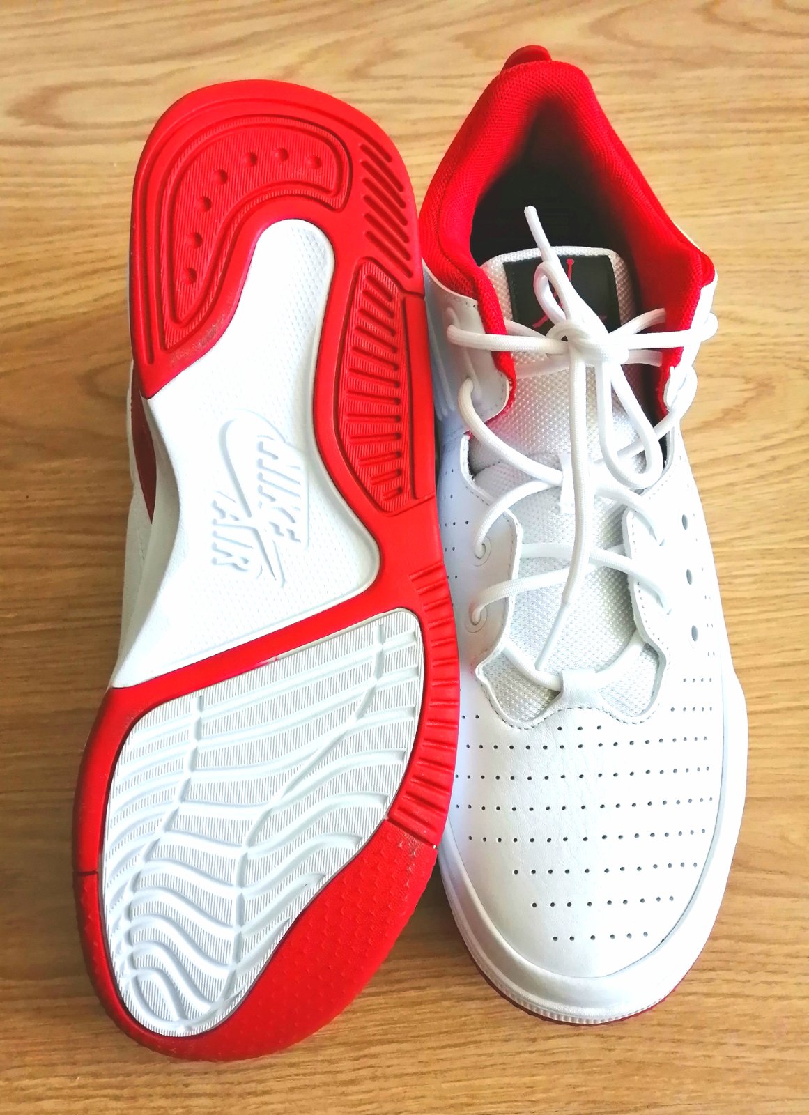 Pánske /chlapčenské tenisky Nike Air, v bielo - červenej farebnej kombinácii, na šnurovanie, veľ. 44,5, vnútorná dĺžka 28,5-29 cm.