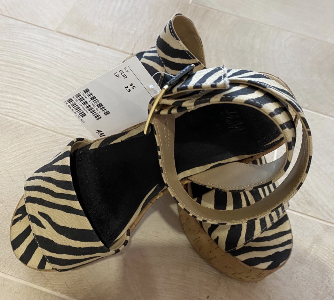 Sandálky, textilné remienky, safari vzor, platforma z korku; nové; PC 30€