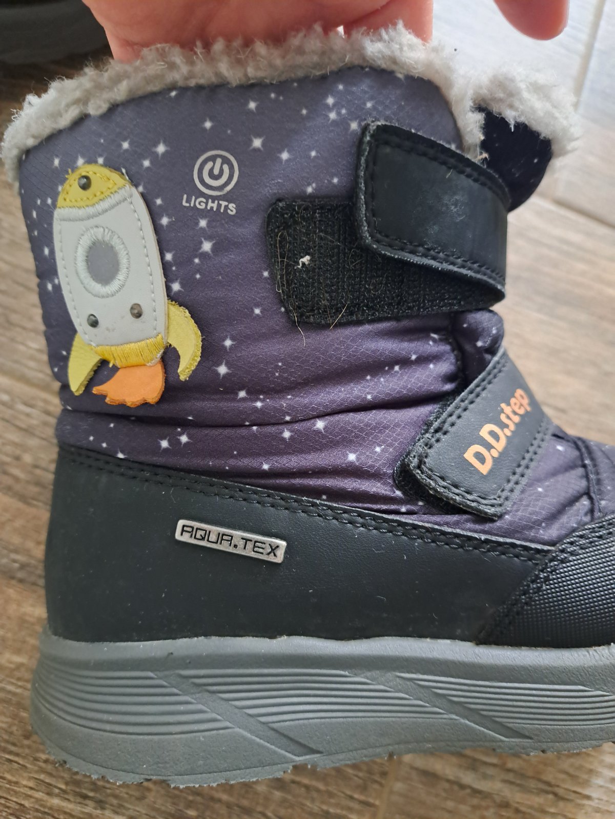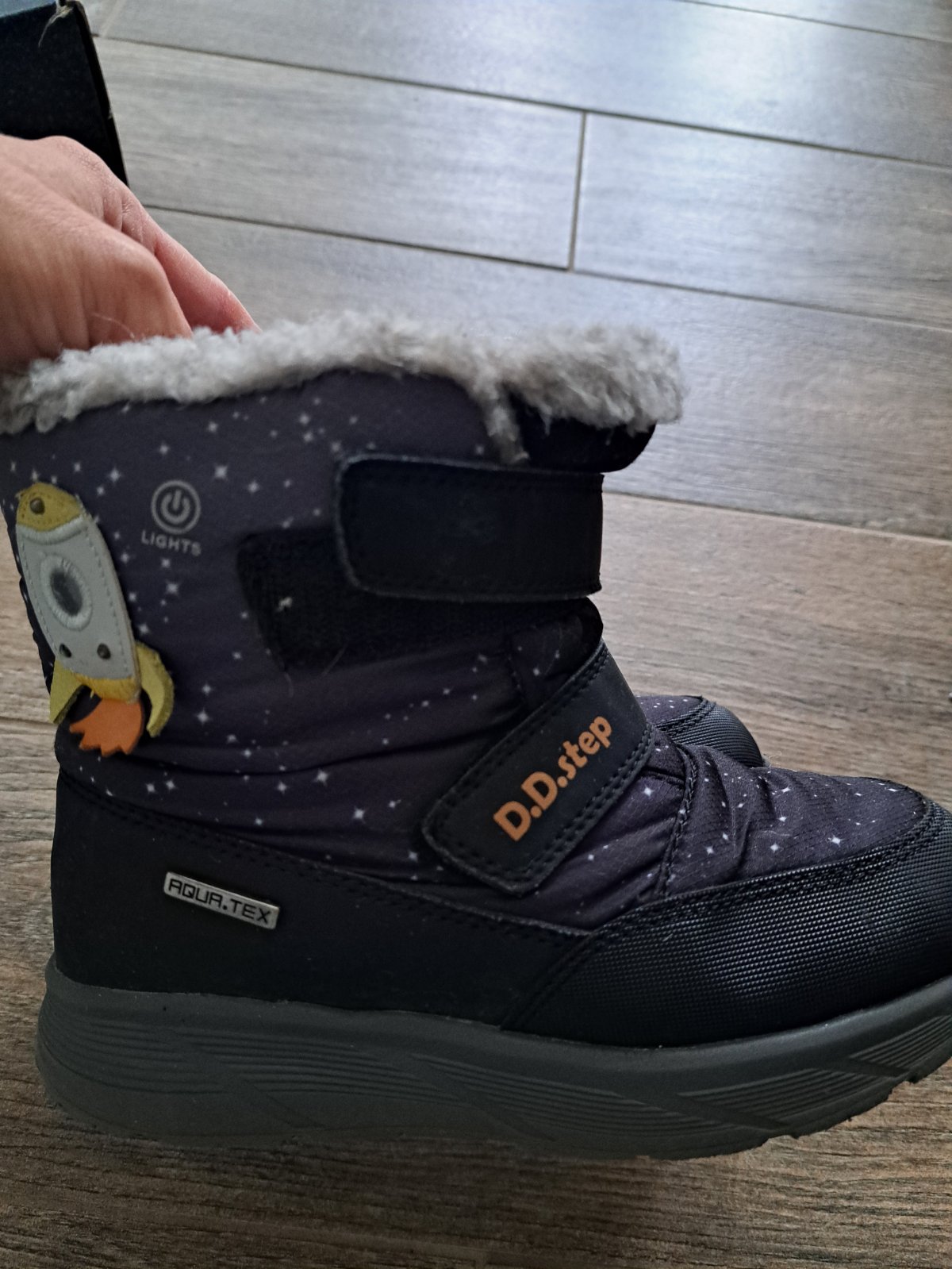 Predám zimné topánky D. D. step, veľ. 33, vnútorná dĺžka 20,7 cm. Nepoškodený, výborný stav, nosené 1 zimu.