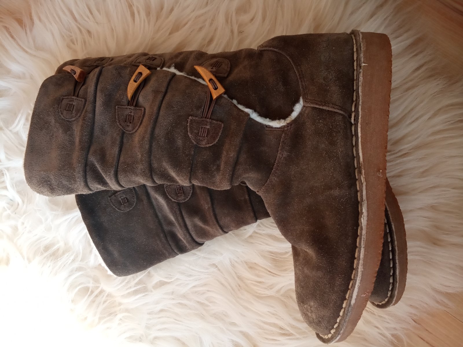 Čižmy kožené, kupované v Taliansku. Sú nosené vo veľmi dobrom stave. Sú podšité mäkkou kožušinkou. Nie sú také lesklé ako na fotke.