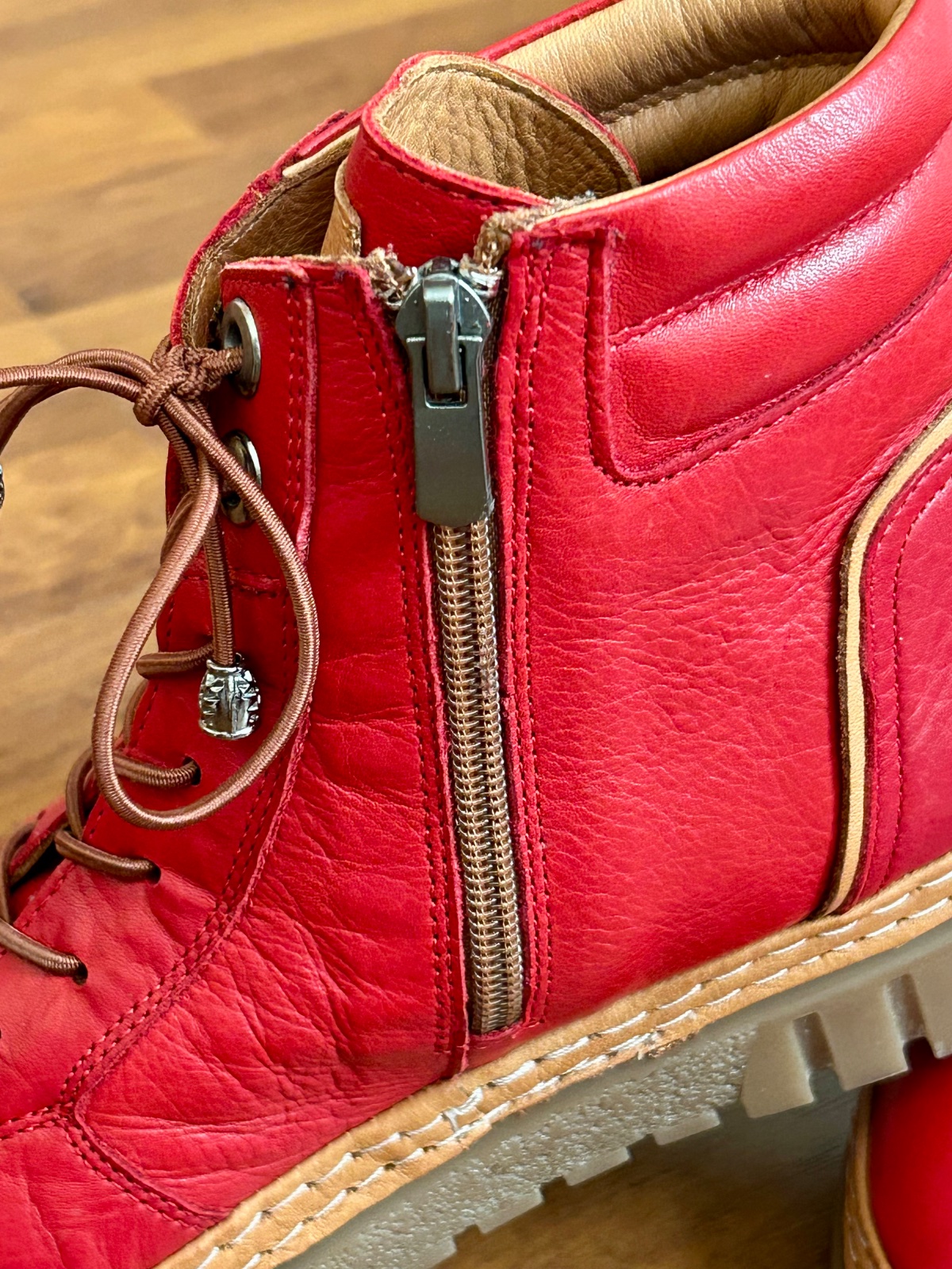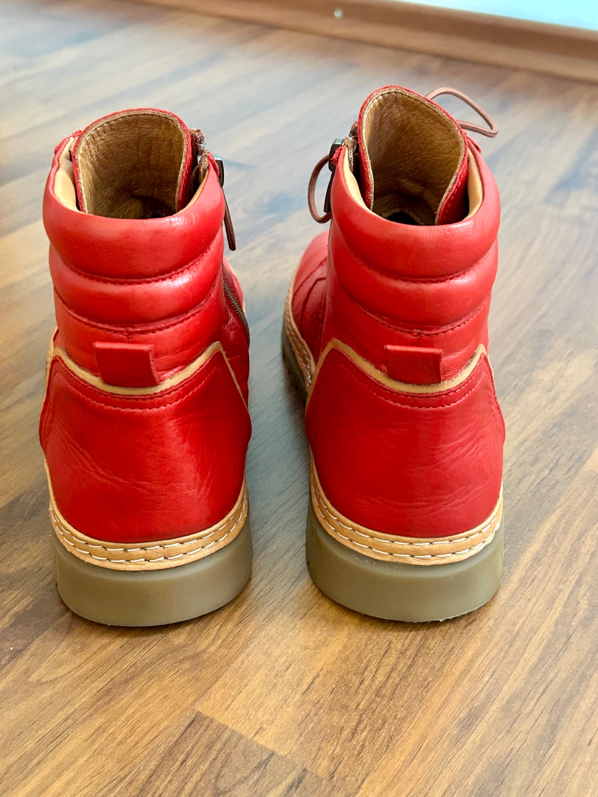 Predám kotníkové topánky zn.BAŤA, vyrobené z kvalitnej pravej kože, krásna červená farba, zapínanie na praktický bočný zips, elastické ozdobné šnúrky, protišmyková podrážka. Vnútro je celé tiež vyrobené z pravej kože, ktorá poskytuje priedušnosť a pohodlie počas celého dňa. Veľkosť 40, dĺžka koženej stielky 25,7 cm, výška podpätku 3 cm. Sú ľahké, mäkké ako papuče a majú elegantný vzhľad. Pôvodná cena bola 119 EUR. BA alebo poštou+poštovné.